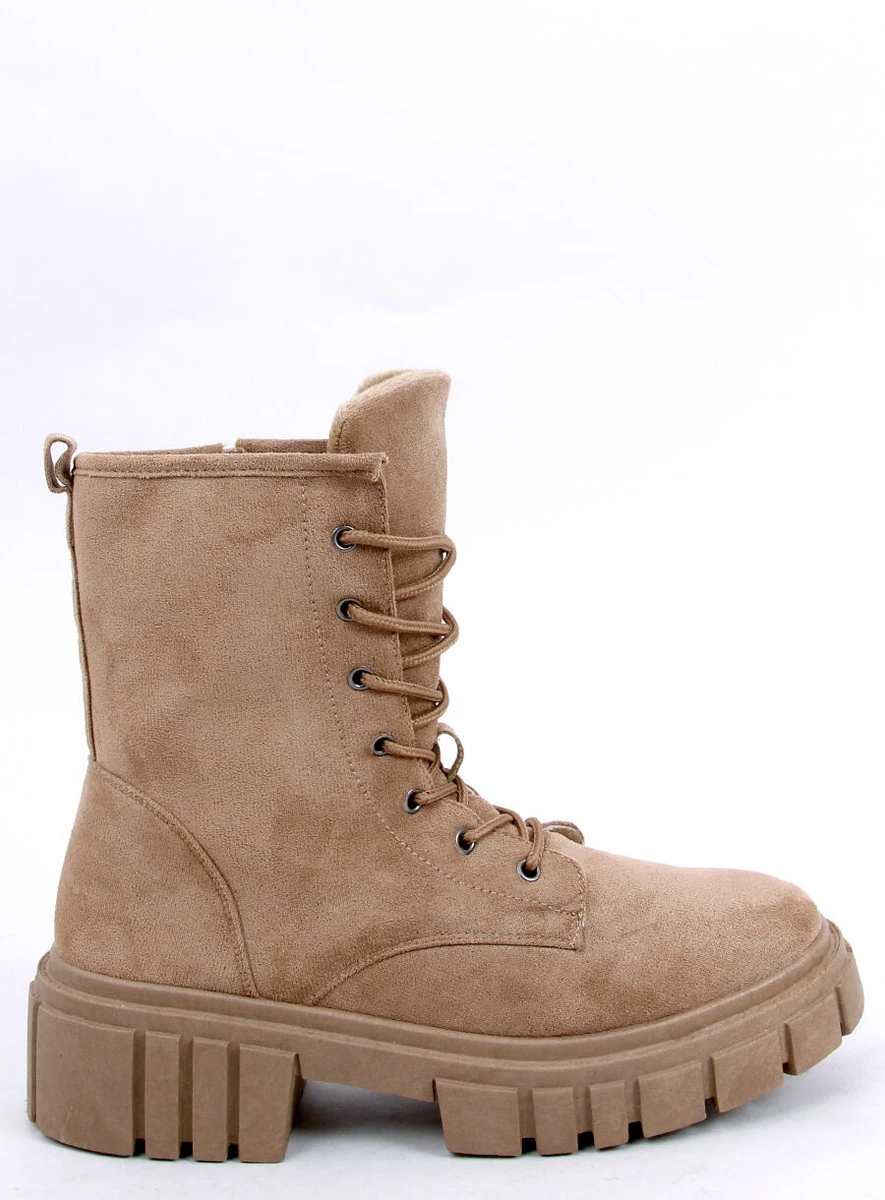 Sznurowane botki damskie - workery. Mają ponadczasowy fason na najmodniejszej, wysokiej podeszwie... Nie dość, że świetnie wyglądają to jeszcze są niesamowicie wygodne - przekonaj się o tym sama : ) Komfort zakładania zapewnia zapięcie na suwak z boku cholewki. Wykonane są z miłego w dotyku zamszu ekologicznego, a wnętrze wyścielone jest delikatnym futerkiem.