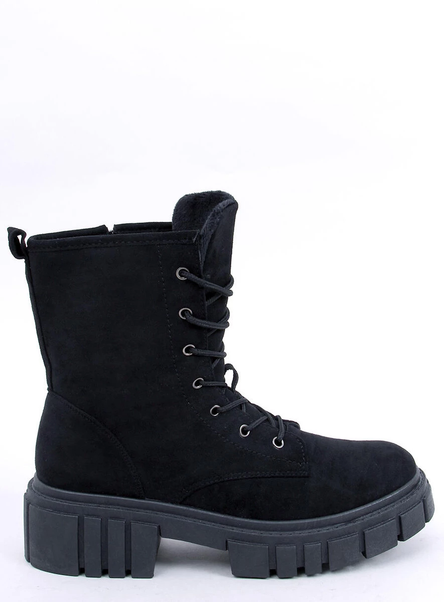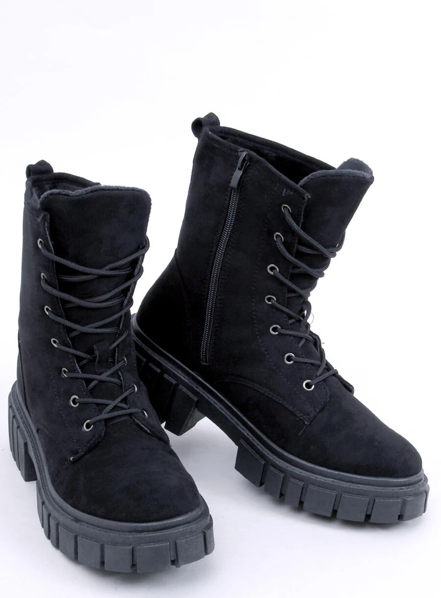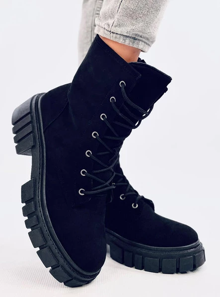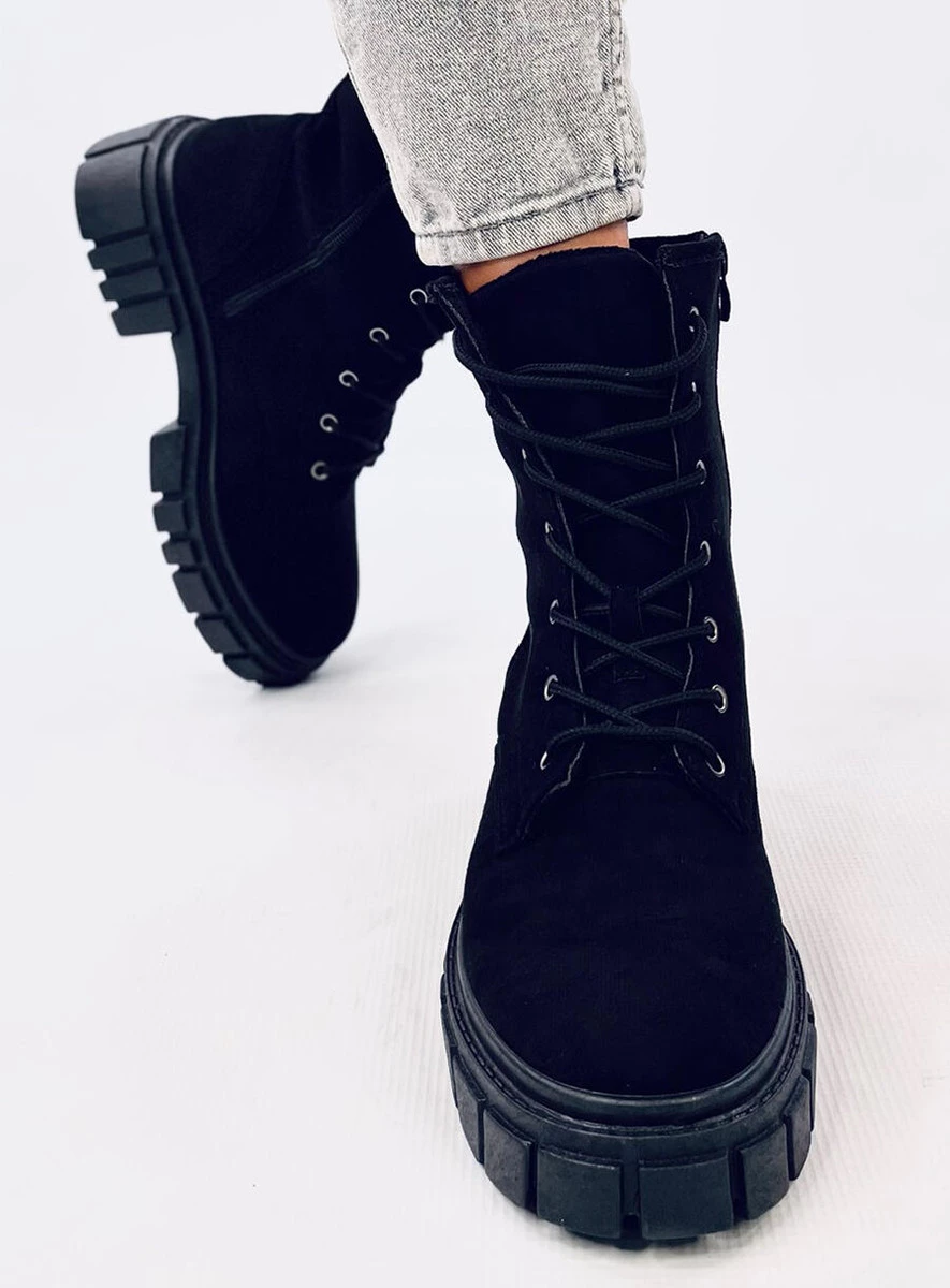 Sznurowane botki damskie - workery. Mają ponadczasowy fason na najmodniejszej, wysokiej podeszwie... Nie dość, że świetnie wyglądają to jeszcze są niesamowicie wygodne - przekonaj się o tym sama : ) Komfort zakładania zapewnia zapięcie na suwak z boku cholewki. Wykonane są z miłego w dotyku zamszu ekologicznego, a wnętrze wyścielone jest delikatnym futerkiem.
