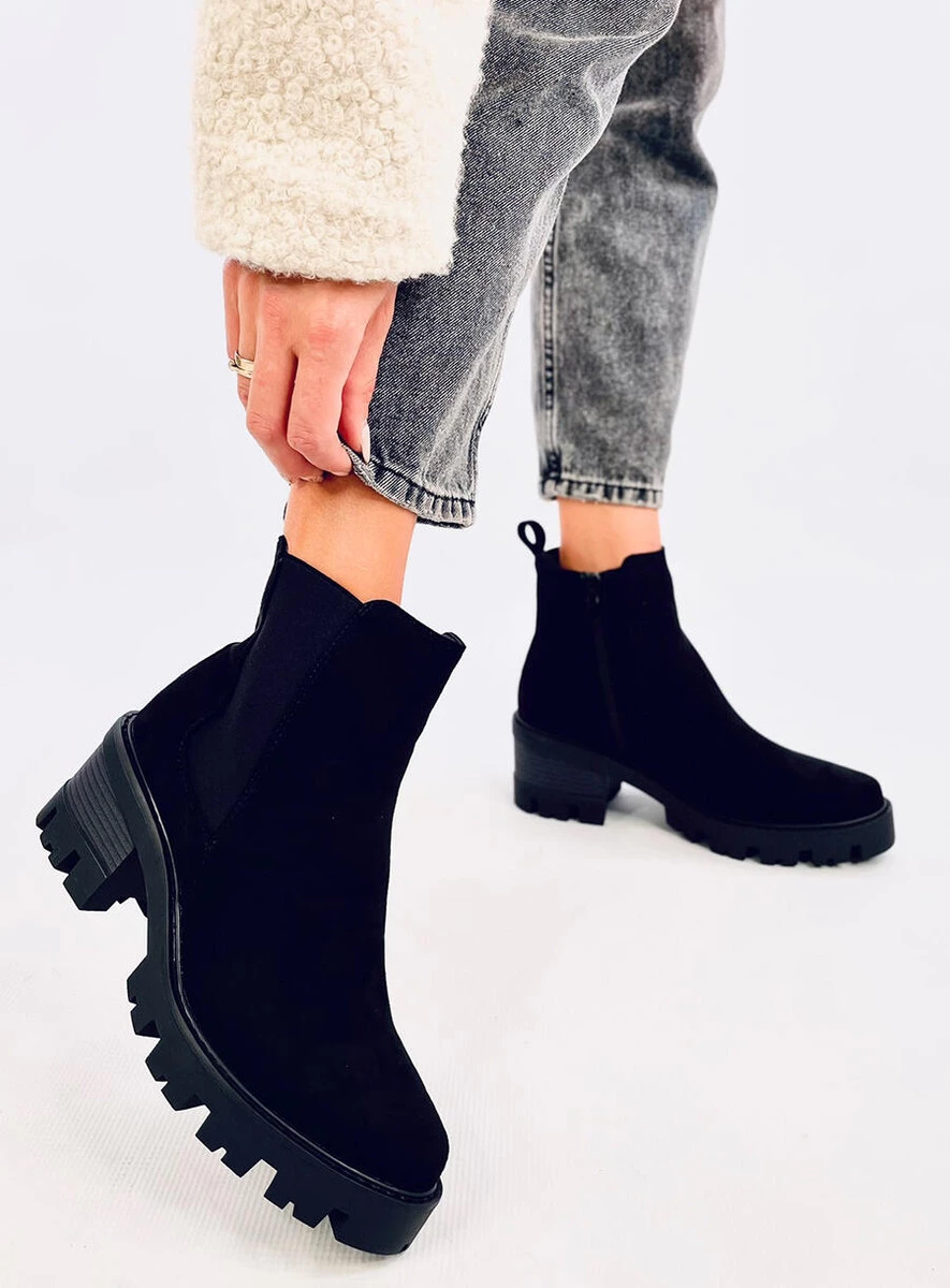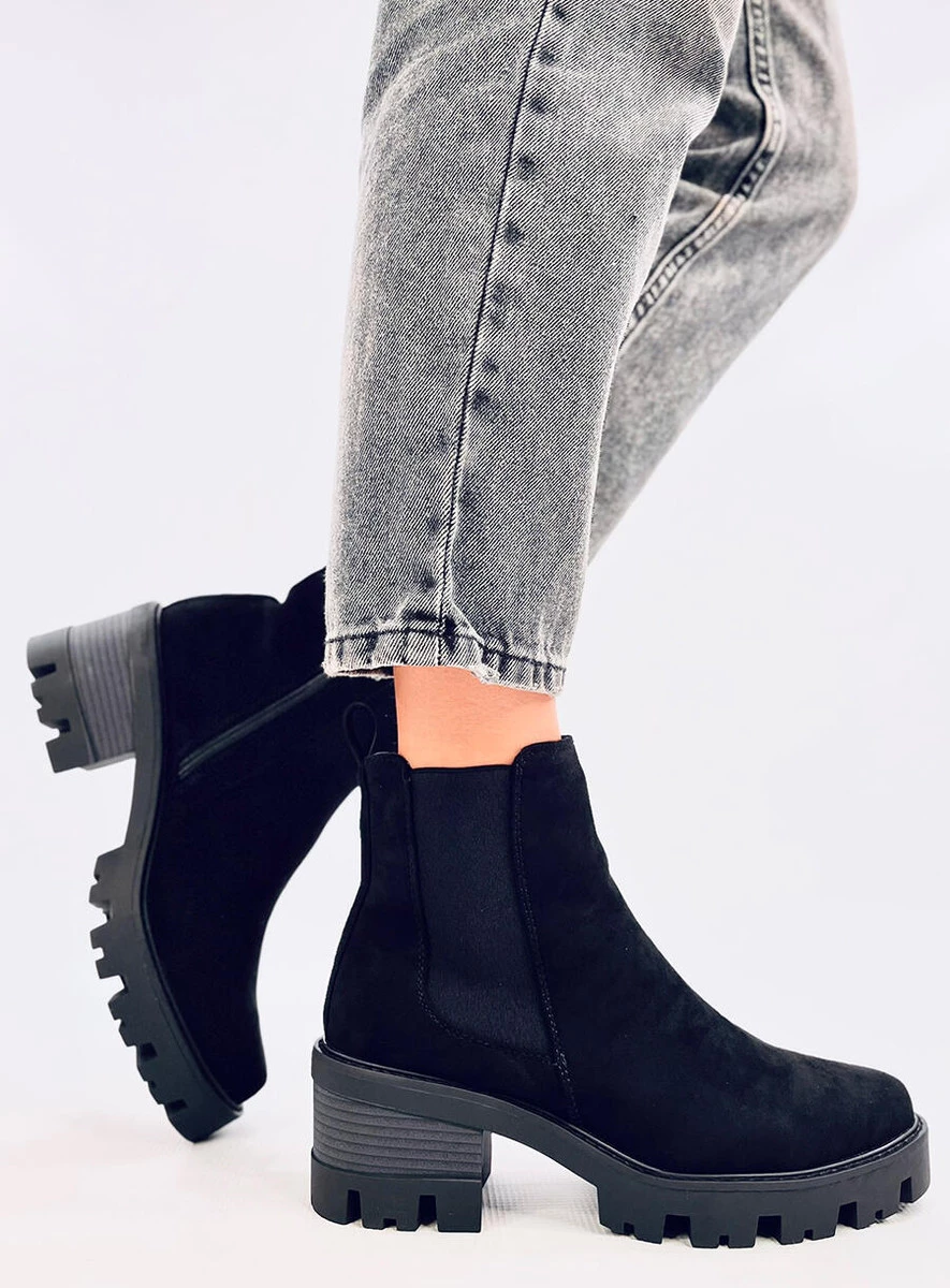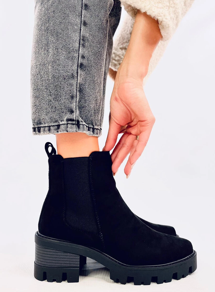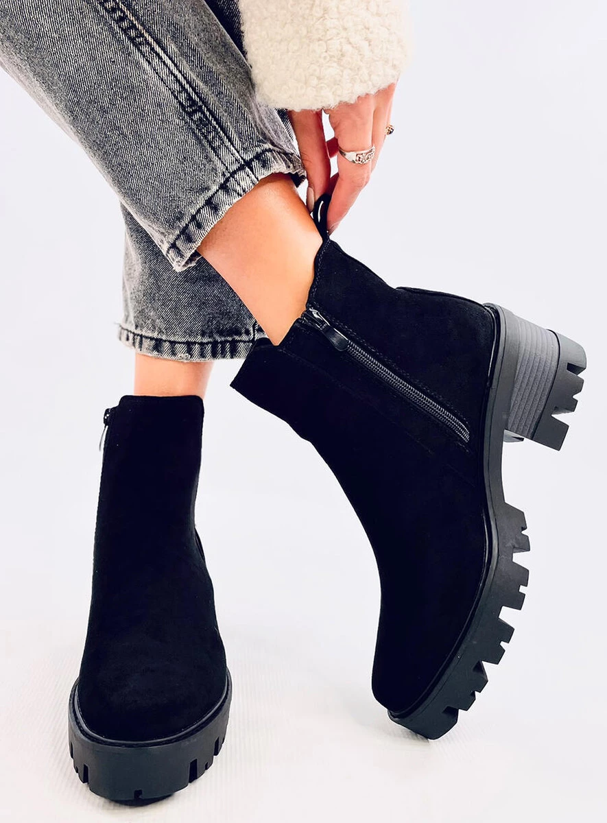 Zamszowe botki damskie o kroju sztybletów na protektorze. Jeśli cenisz sobie wygodę i proste fasony to z pewnością ten model przypadnie Ci do gustu. Szeroki obcas o wysokości 6,5 cm oraz praktyczne zapięcie na zamek błyskawiczny to ich niewątpliwe zalety. To idealne buty na co dzień! Wykonane są z zamszu ekologicznego, a wnętrze wyścielone jest delikatnym futerkiem.