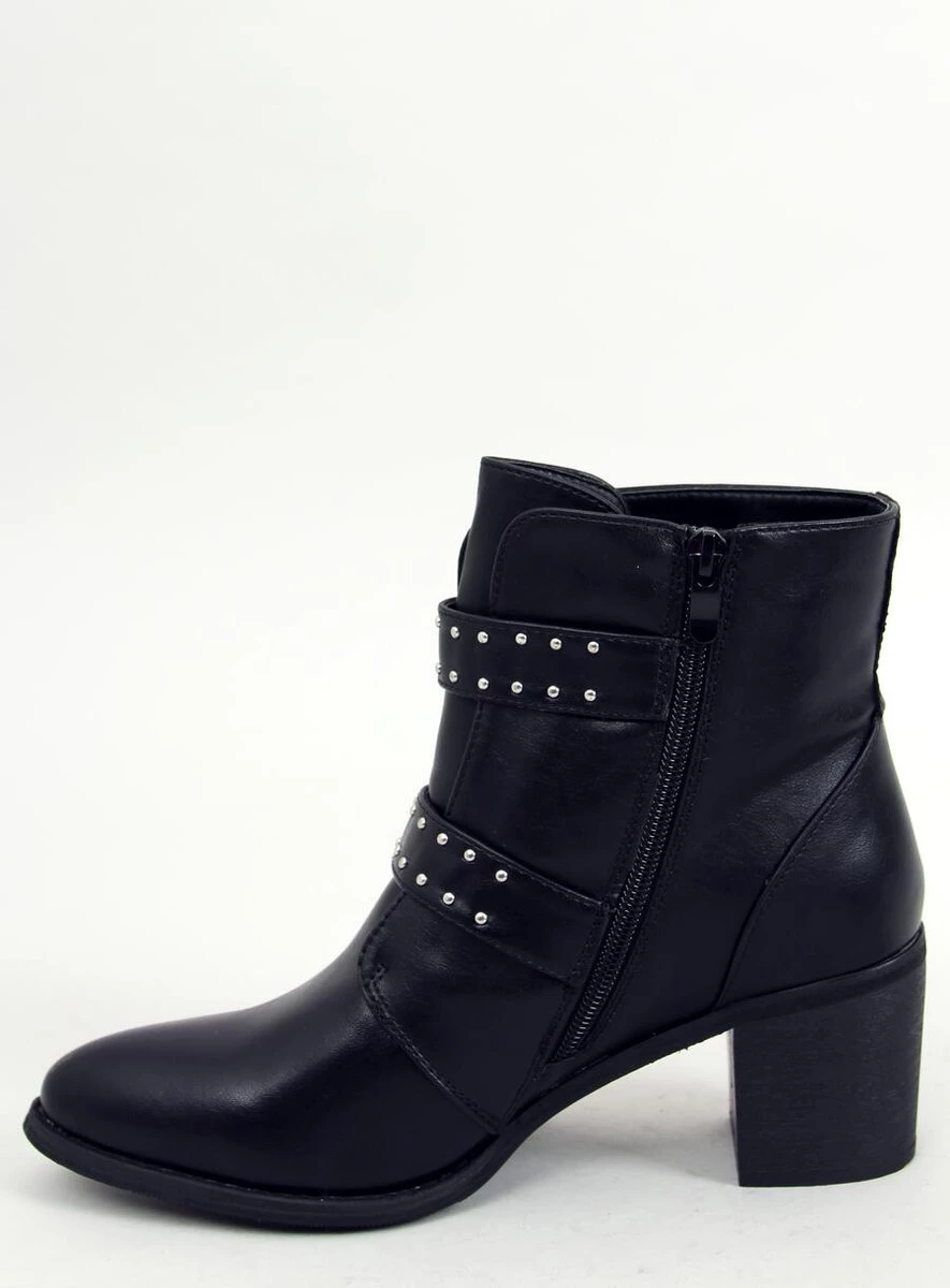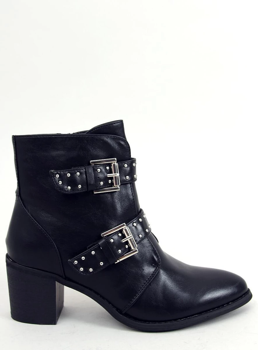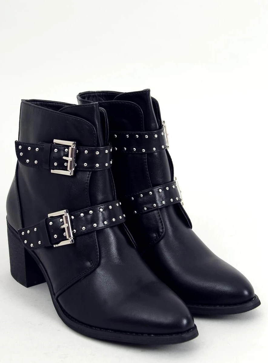 Licowe botki damskie na szerokim obcasie o wysokości 6,5 cm. Mają paski z klamerkami oraz liczne srebrne ćwieki, które rewelacyjnie komponują się z rockowym charakterem oraz czarnym kolorem tych butów. Uwielbiamy takie połączenia! Mają praktyczne zapięcie na zamek błyskawiczny po wewnętrznej stronie, który ułatwia zakładanie. Wykonane z licowej skóry ekologicznej, a wyścielone delikatnym futerkiem.
