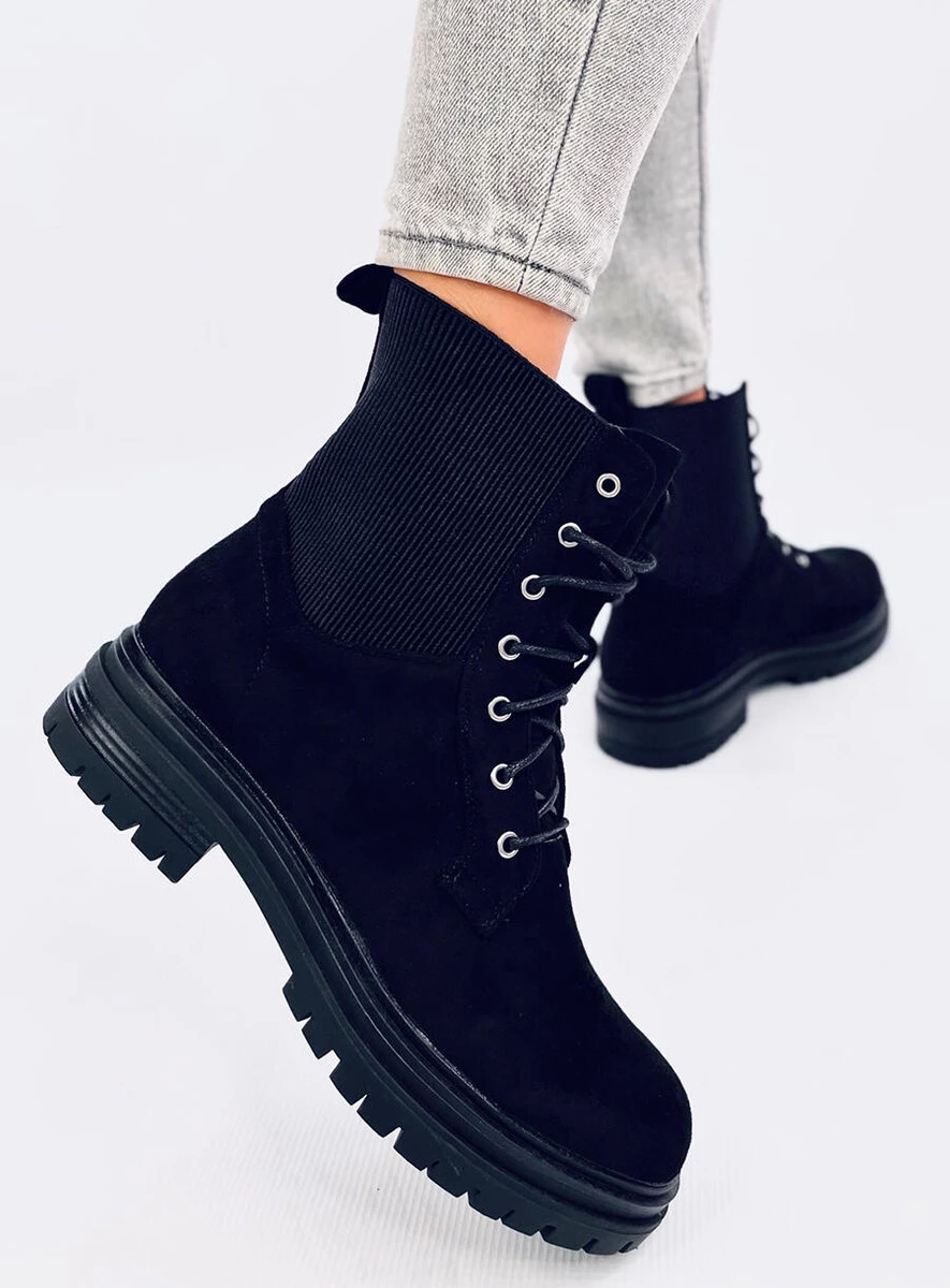 Zamszowe botki damskie - workery. Dzięki klasycznemu sznurowaniu można buty idealnie dopasować do tęgości stopy, a zakładanie ułatwiają elastyczne wstawki po bokach. Wykonane są z bardzo miłego w dotyku zamszu ekologicznego, a wnętrze ocieplone jest delikatnym futerkiem. Z pewnością sprostają Twoim wymaganiom : )
