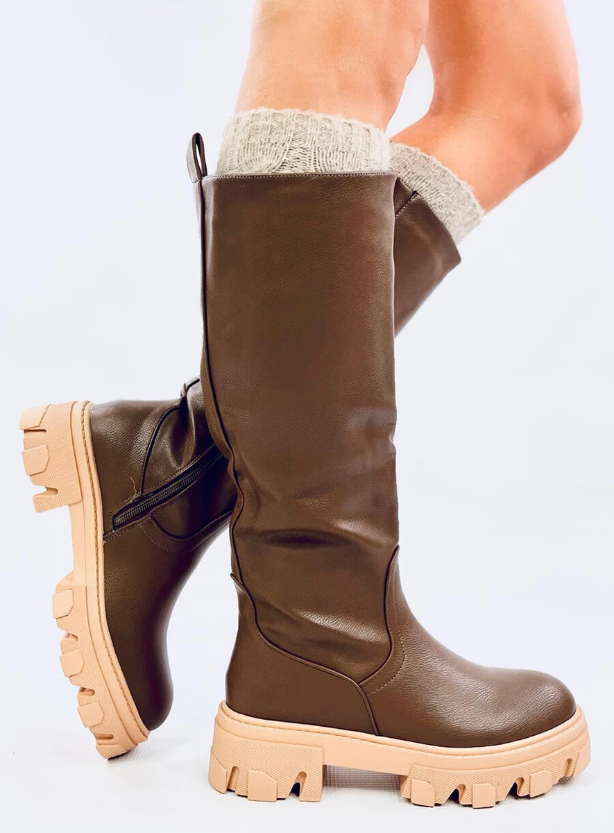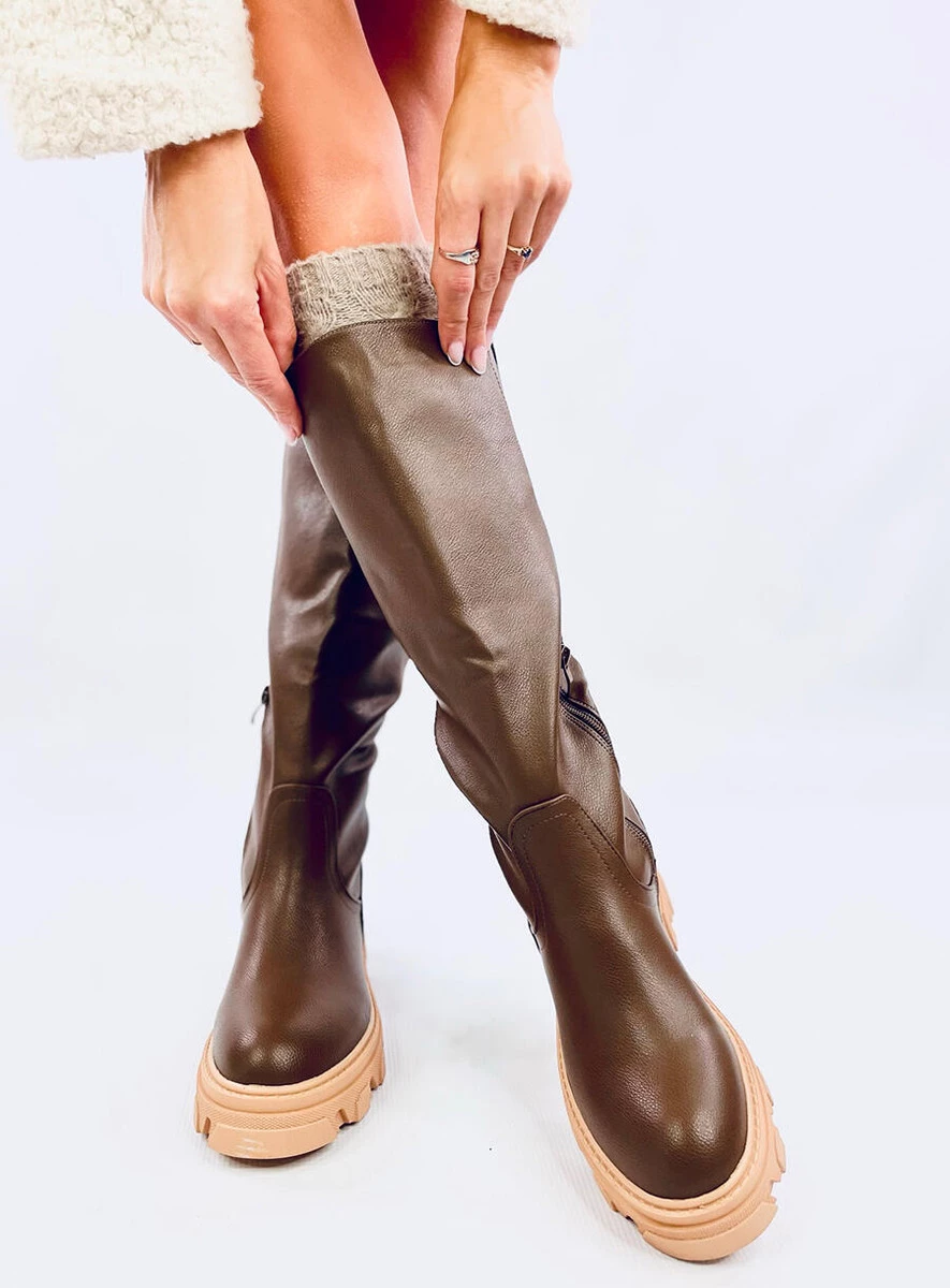 Licowe kozaki – oficerki damskie. Ich prosty design podkreślony jest przez najmodniejszą, ultranowoczesną podeszwę o wysokości 3 cm. Dzięki nim zwrócisz na siebie uwagę i udowodnisz, że znasz się na trendach! Komfortowe zakładania zapewnia praktyczne zapięcie na zamek błyskawiczny. Wykonane są ze skóry ekologicznej, a wnętrze wyścielone jest delikatnym futerkiem.