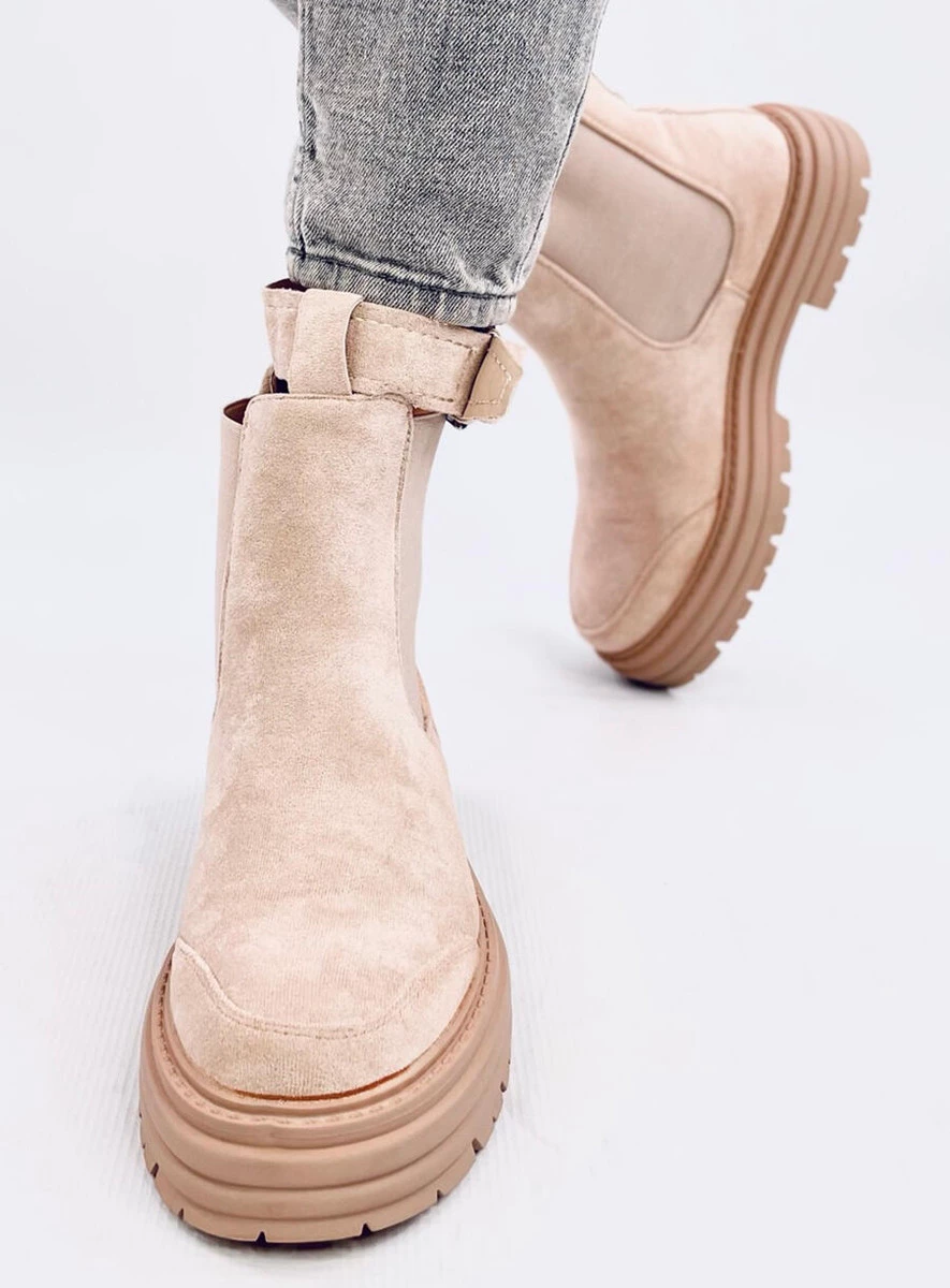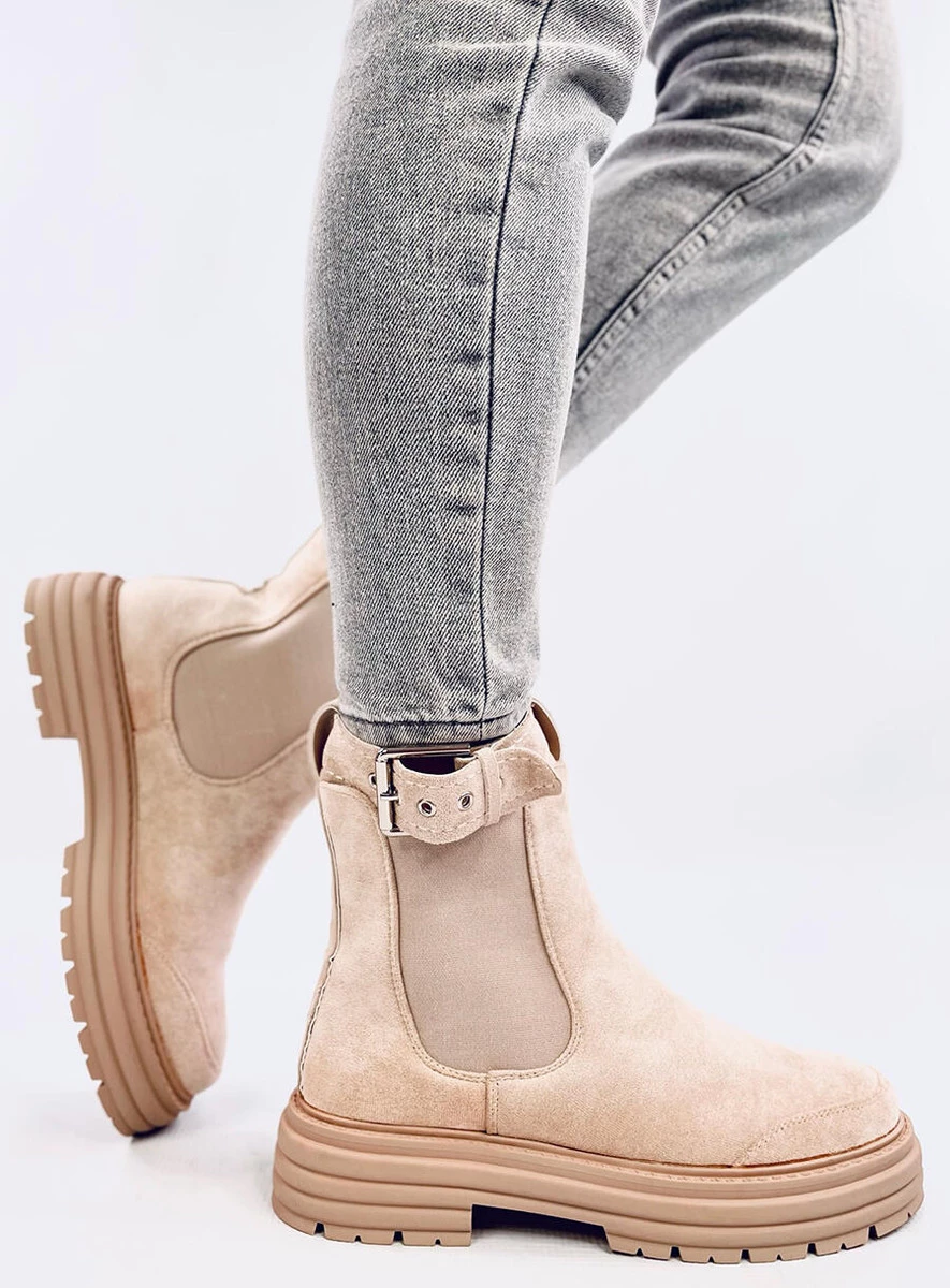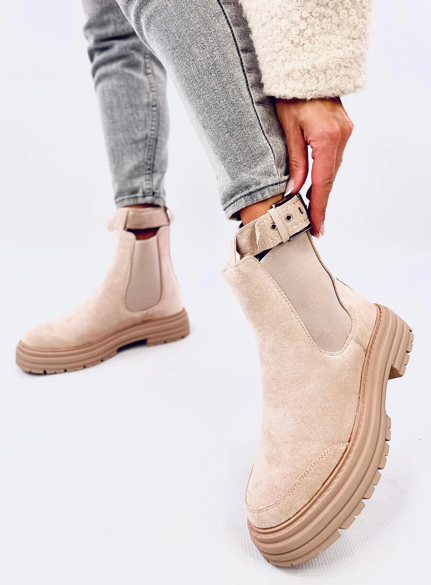 Zamszowe botki damskie - sztyblety na grubej podeszwie. Pasek z klamerką (odpinany) urozmaica design tego modelu. Jeśli jesteś gotowa na odrobinę szaleństwa to zamów je już dziś : ) Botki posiadają gumowe wstawki, które zapewniają komfortowe zakładanie. Wnętrze butów wyścielone jest delikatnym futerkiem. Materiał zewnętrzny - zamsz ekologiczny.