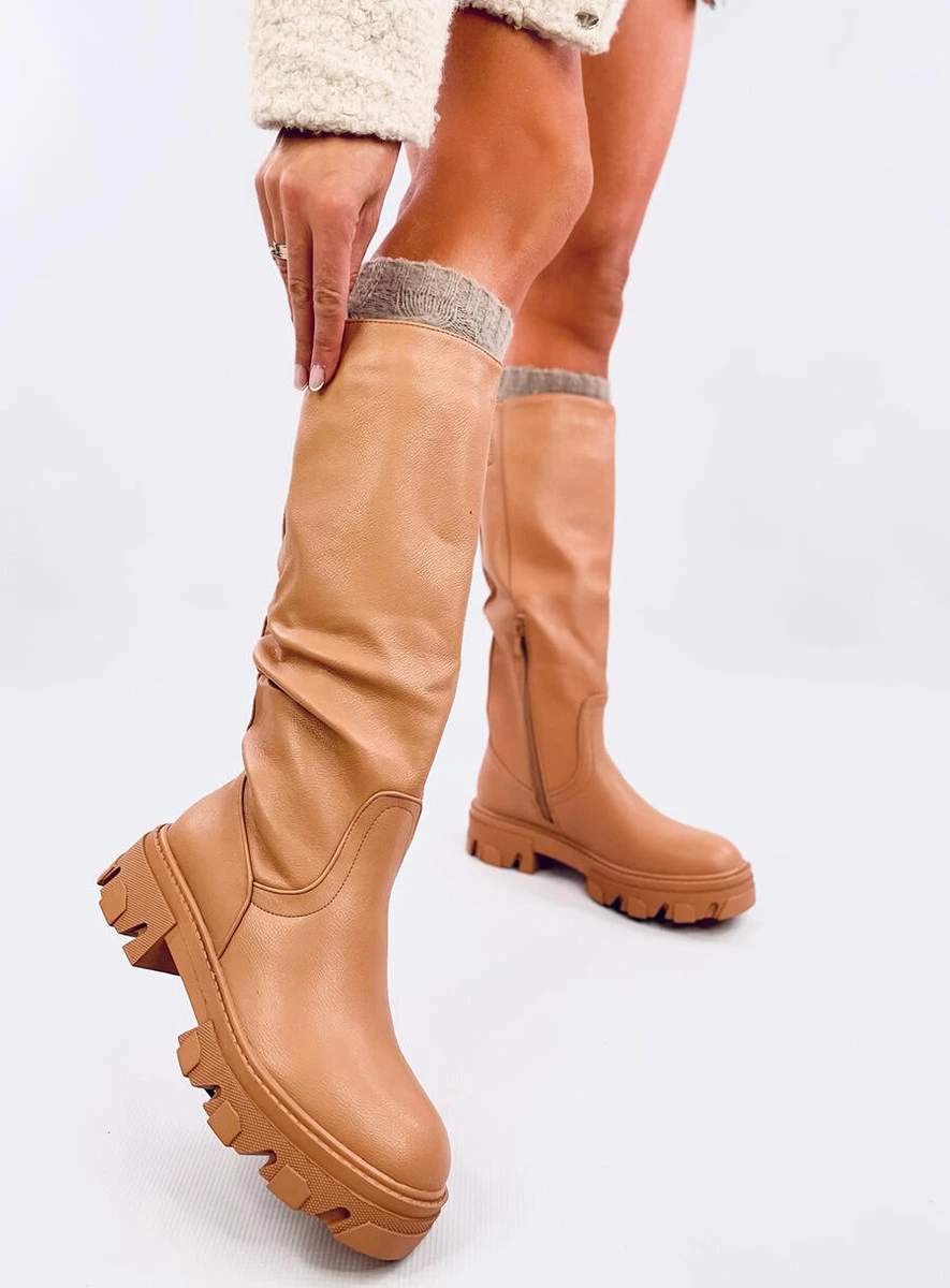 Licowe kozaki damskie - oficerki na grubej podeszwie. Jeśli podążasz za trendami to koniecznie musisz je mieć! Komfort zakładania zapewnia zapięcie na suwak z boku cholewki. Wykonane są ze skóry ekologicznej, a wnętrze wyścielone jest delikatnym futerkiem.
