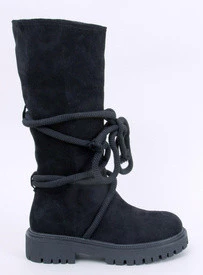 Zamszowe kozaki damskie - oficerki na protektorze. To oryginalny model z efektownym sznurkiem oplatającym cholewkę (można go zdjąć) - absolutny hit tego sezonu! Mają praktyczne zapięcie na suwak, które ułatwia zakładanie. Wnętrze butów wyścielone jest delikatnym futerkiem. Materiał zewnętrzny - zamsz ekologiczny.