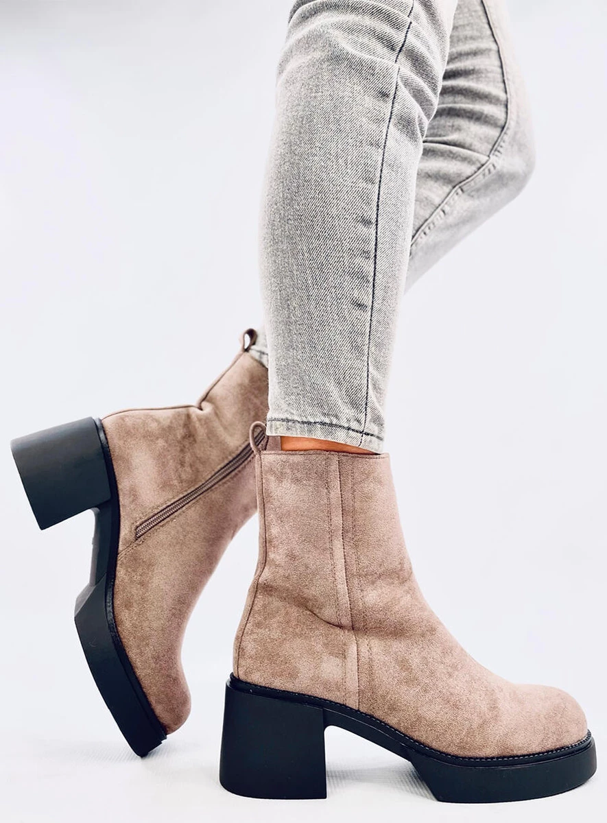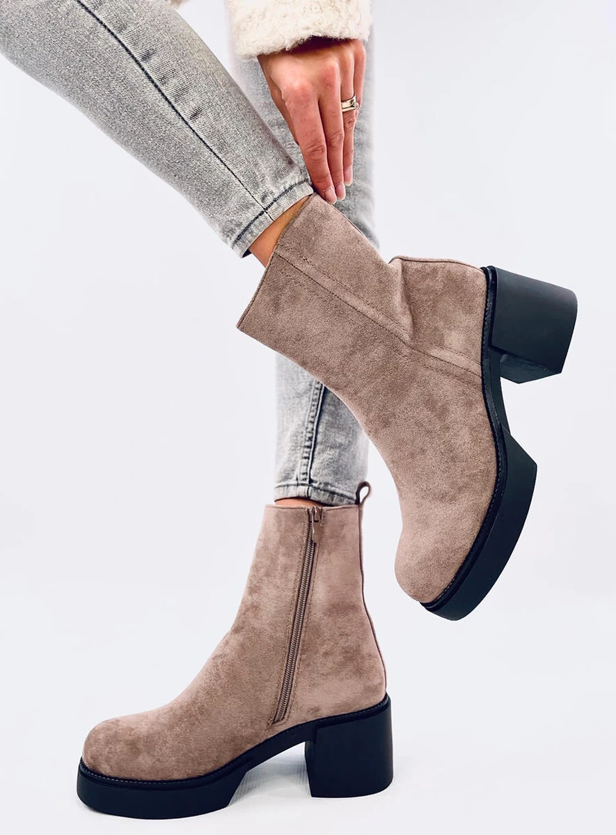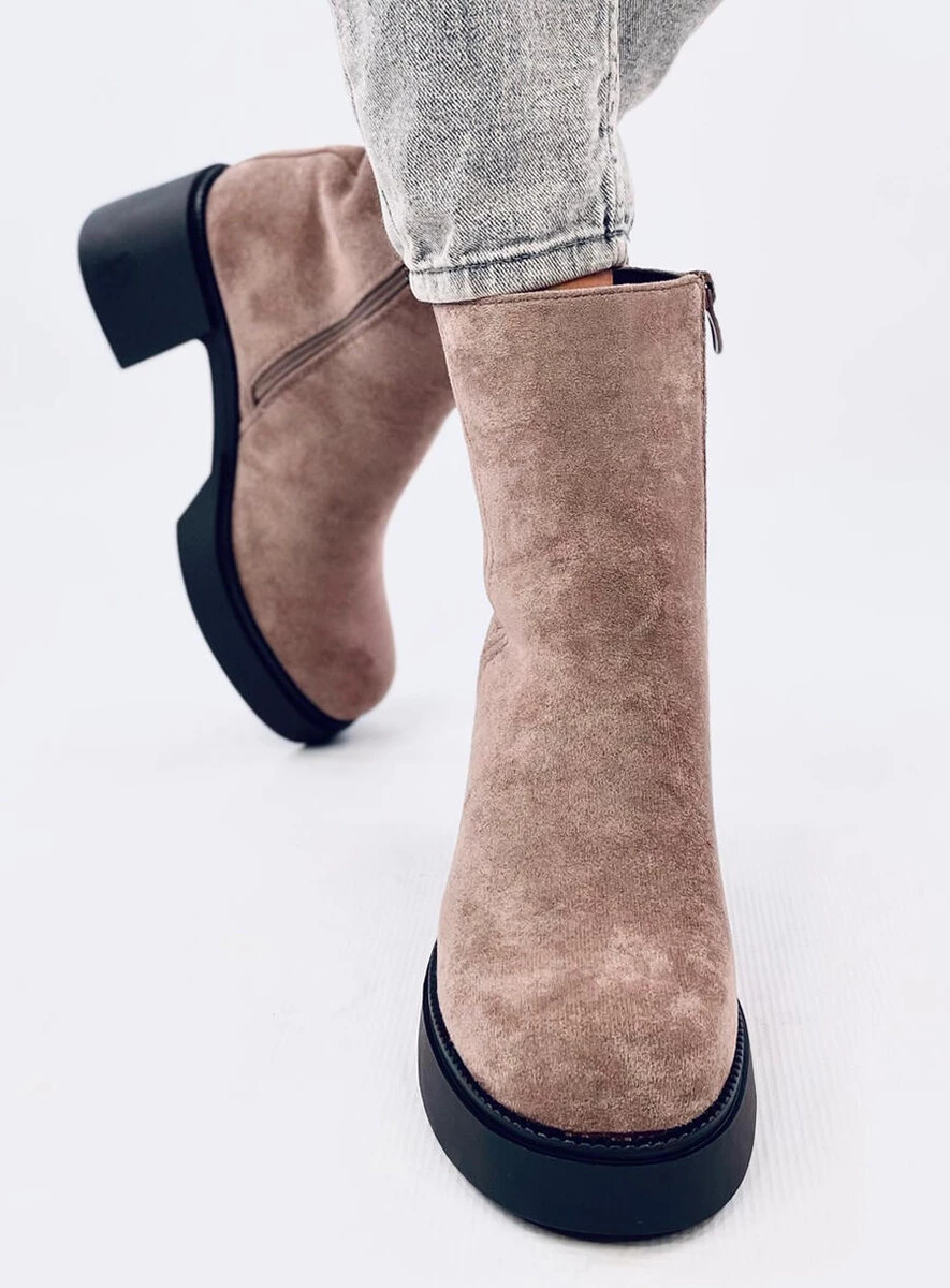 Botki damskie na szerokim obcasie o wysokości 6,5 cm i platformie - 2 cm. To klasyczny model, który doskonale sprawdzi się w każdej codziennej sytuacji : ) Wygodnym rozwiązaniem jest zapięcie na zamek błyskawiczny z boku cholewki. Nie daj się dłużej namawiać : ) Wnętrze butów wyścielone jest delikatnym futerkiem. Materiał zewnętrzny - zamsz ekologiczny (kolor czarny - skóra ekologiczna).