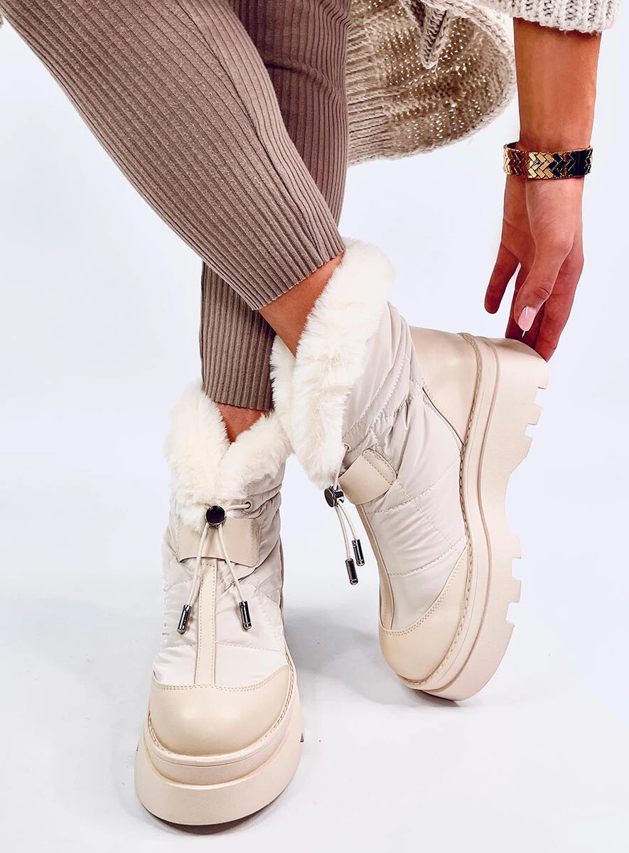 Śniegowce damskie na platformie. Futerko na górze cholewki nadaje im wyjątkowego stylu... Nie dość, że świetnie wyglądają, to jeszcze są niesamowicie wygodne! Z pewności spełnią Twoje oczekiwania : ) Mają wysoką podeszwę, która świetnie izoluje od podłoża. Wnętrze butów wyścielone jest delikatnym futerkiem. Materiał zewnętrzny – skóra ekologiczna + tkanina ortalionowa.