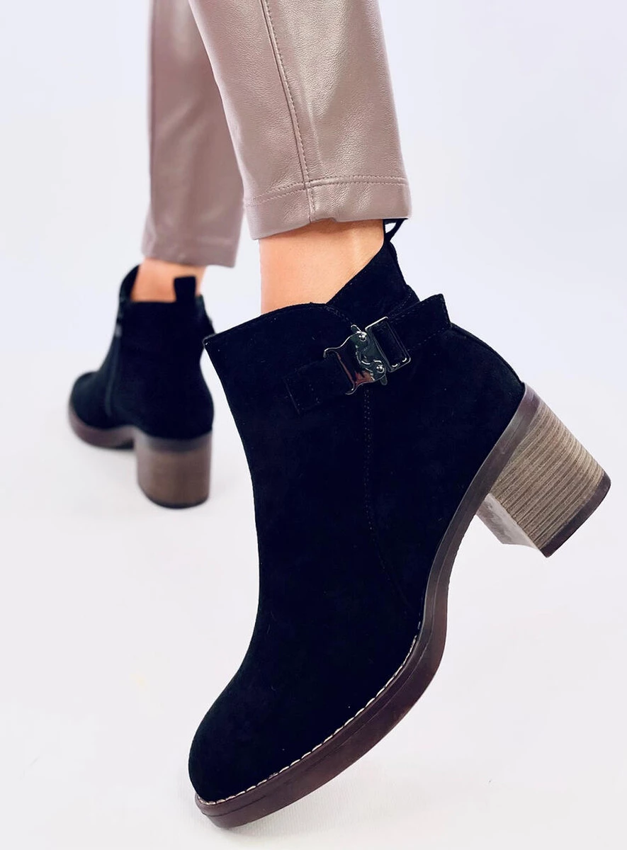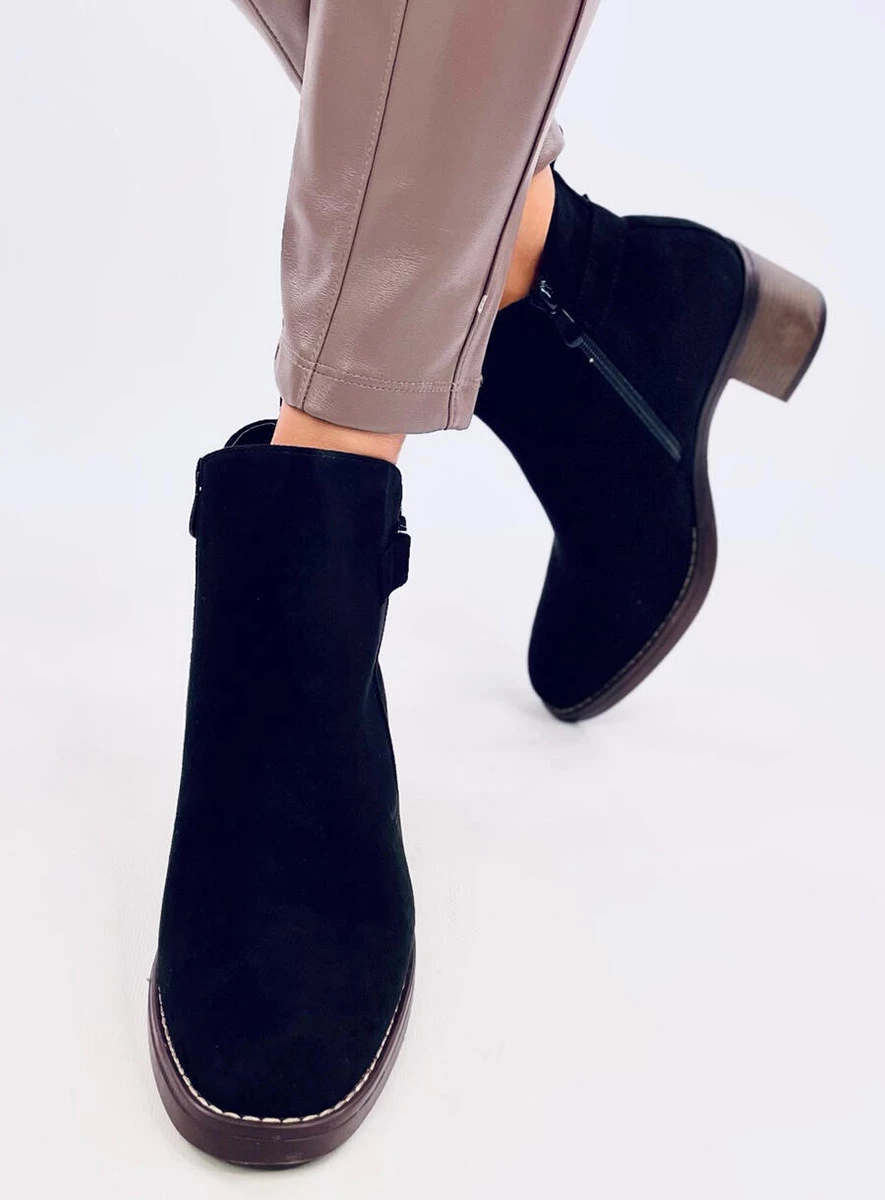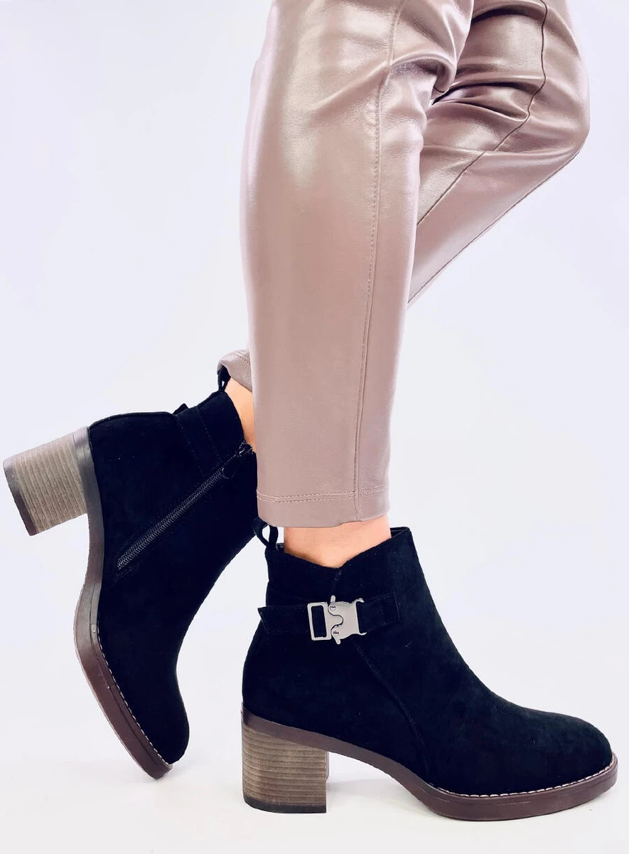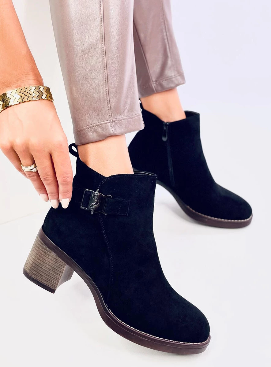 Zamszowe botki damskie na stabilnym obcasie o wysokości 6 cm. To klasyczny model, który doskonale sprawdzi się w każdej codziennej sytuacji : ) Wygodnym rozwiązaniem jest zapięcie na zamek błyskawiczny z boku cholewki, a ciekawym akcentem jest subtelna klamerka. Nie daj się dłużej namawiać : ) Wykonane są z zamszu ekologicznego, a wnętrze wyścielone jest delikatnym futerkiem.
