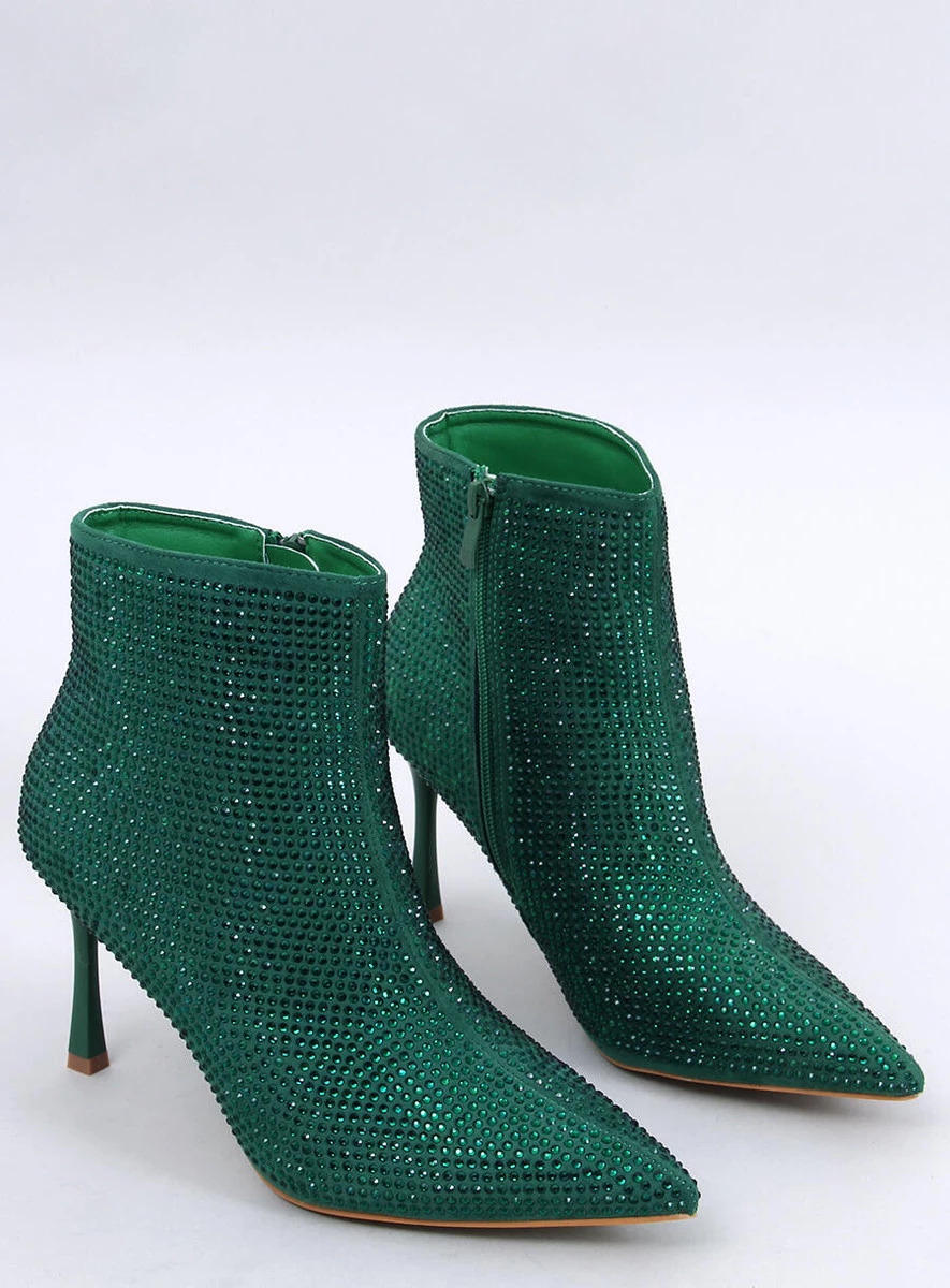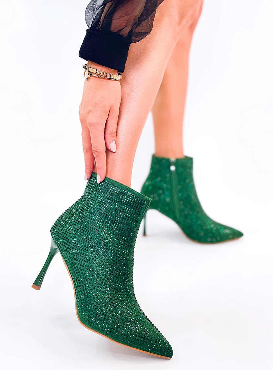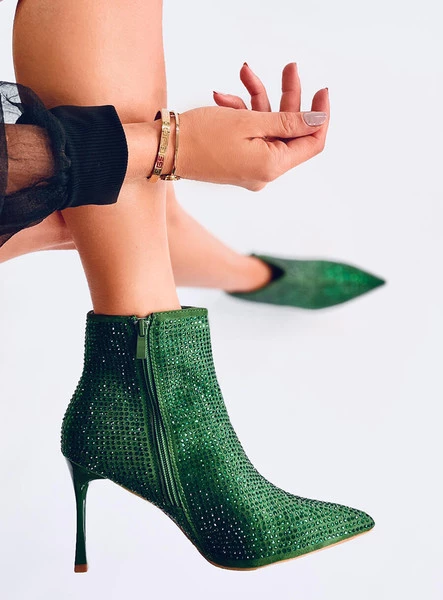 Opinie o Botki na szpilce z kryształkami DEMISH GREEN