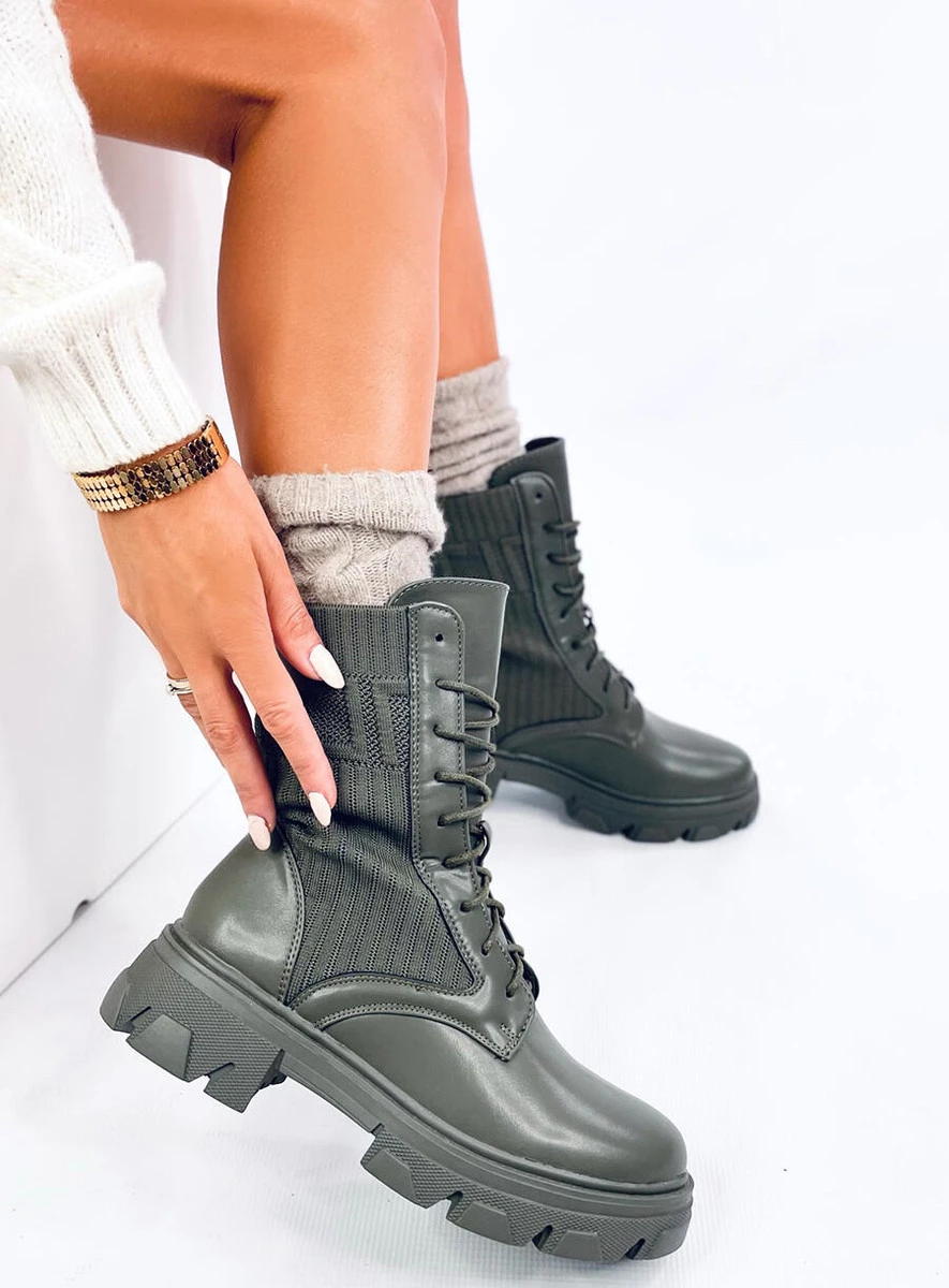 Botki damskie na wysokiej podeszwie. Oto buty dla fashionistek podążających za najnowszymi trendami! Modnego charakteru nadaje im elastyczna, skarpetkowa cholewka oraz gruba podeszwa. Uwielbiamy takie połączenia... Nie dość, że świetnie wyglądają to jeszcze są niesamowicie wygodne : ) Materiał zewnętrzny - skóra ekologiczna + tkanina.
