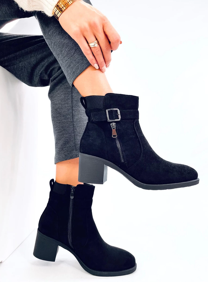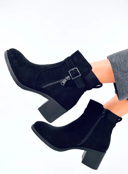 Zamszowe botki damskie. Jeśli cenisz sobie wygodę i proste, klasyczne fasony to z pewnością ten model z subtelną klamerką przypadnie Ci do gustu. Szeroki obcas o wysokości 6 cm oraz praktyczne zapięcie na zamek błyskawiczny to ich niewątpliwe zalety. Wykonane są z zamszu ekologicznego, a wnętrze wyścielone jest delikatnym futerkiem.