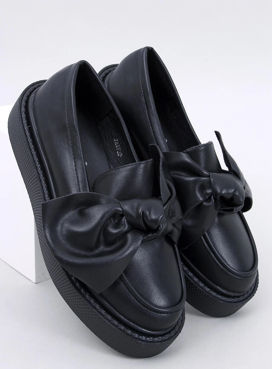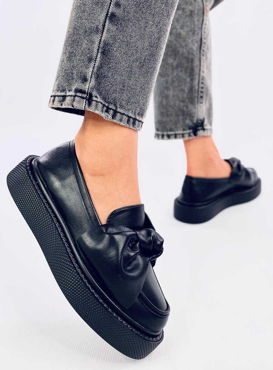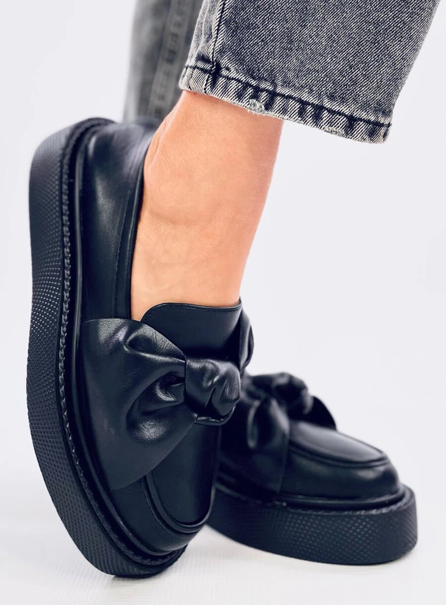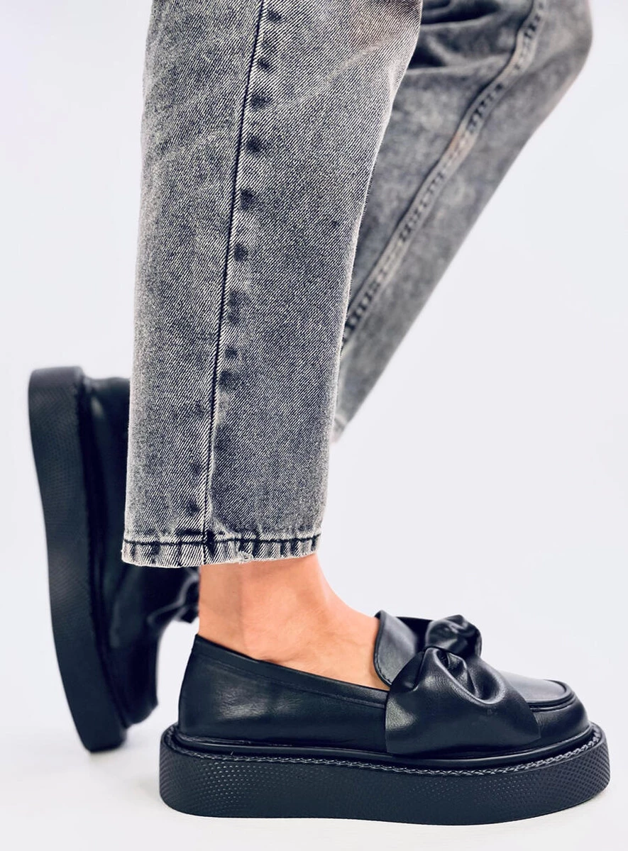 Mokasyny na platformie na dobre zagościły w aktualnych trendach . Ten model idealnie wpisuje się w jesienny kanon mody. Mimo wysokiej podeszwy, buty dobrze trzymają się stopy. Na przodzie wyjątkowa kokarda, przykuwająca wzrok. Mokasyny wykonane są z licowej skóry eko, łatwej w utrzymaniu czystości.