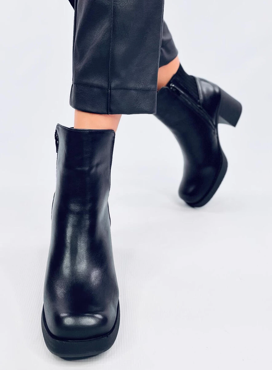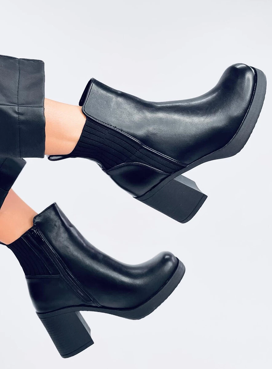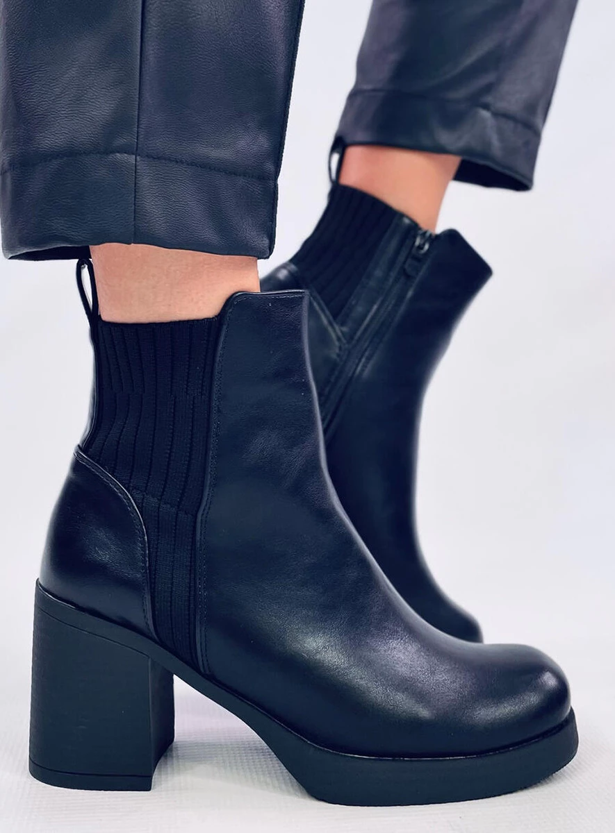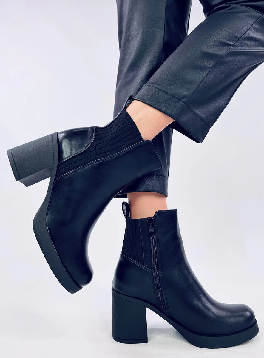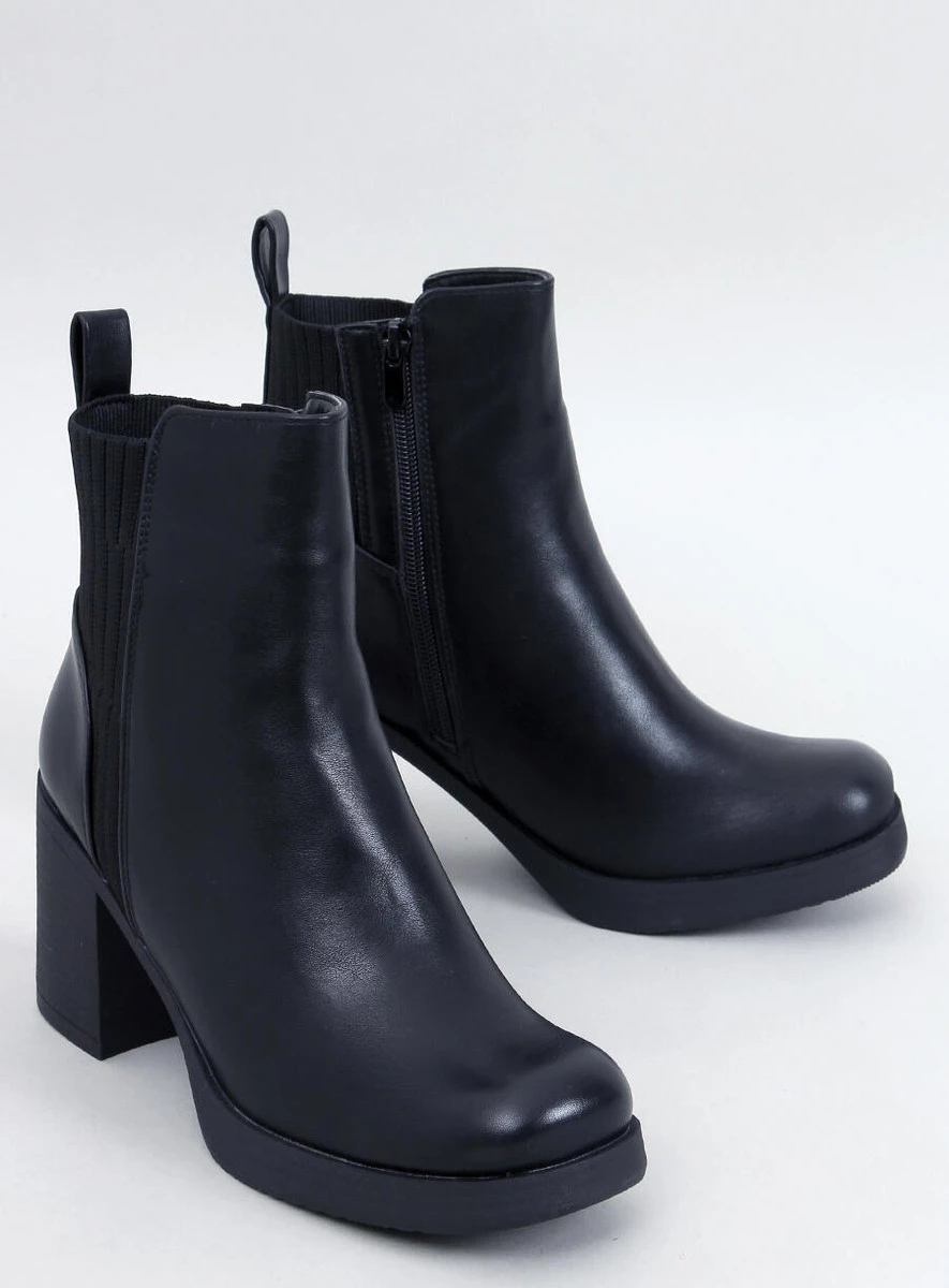 Licowe botki damskie na obcasie. Model wyróżnia się ponadczasowym fasonem z subtelną, elastyczną wstawką. Szeroki obcas o wysokości 8 cm wspaniale wydłuży nogi i zapewni stabilność. Praktyczny zamek z boku ułatwiający zakładanie to ich niewątpliwa zaleta. Wnętrze butów wyścielone jest delikatnym futerkiem. Materiał zewnętrzny – skóra ekologiczna.