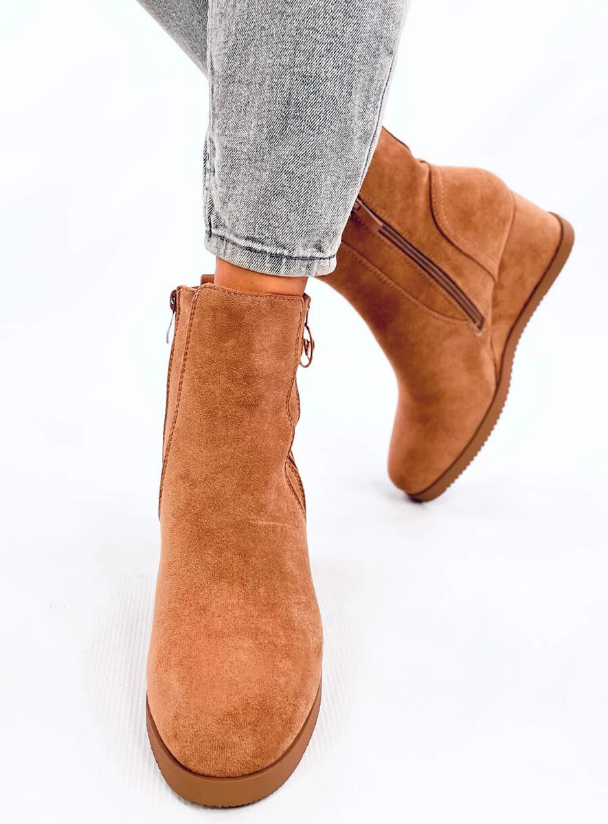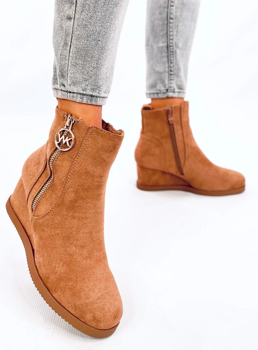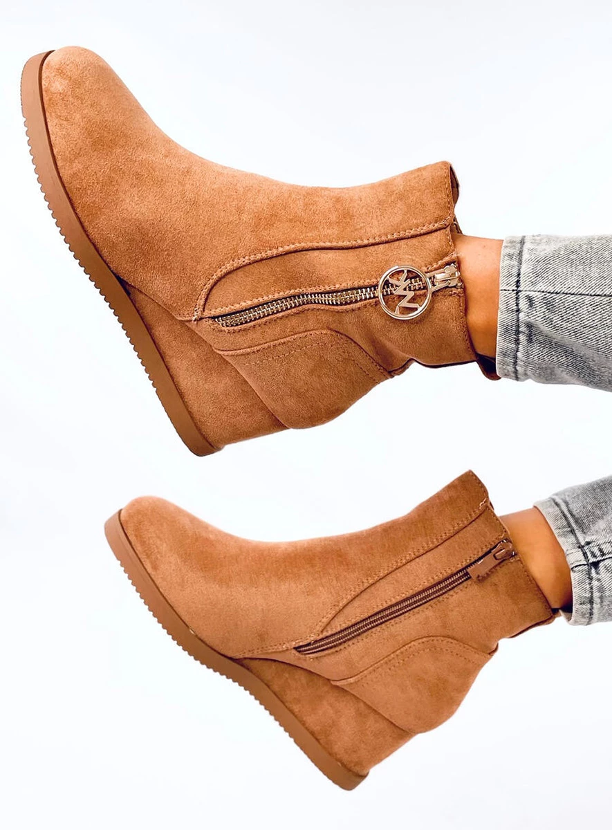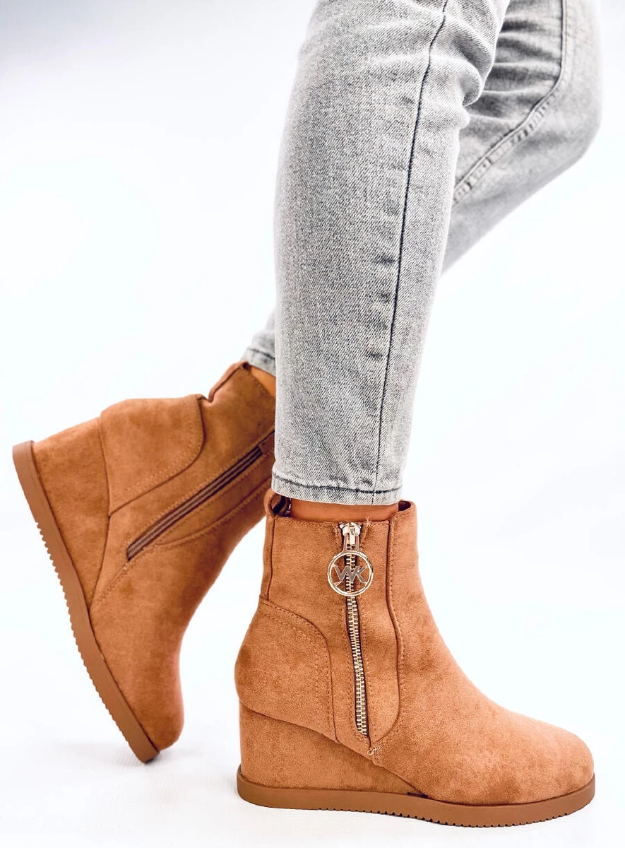 Opinie o Botki na koturnie ze złotym suwakiem VAVIN CAMEL