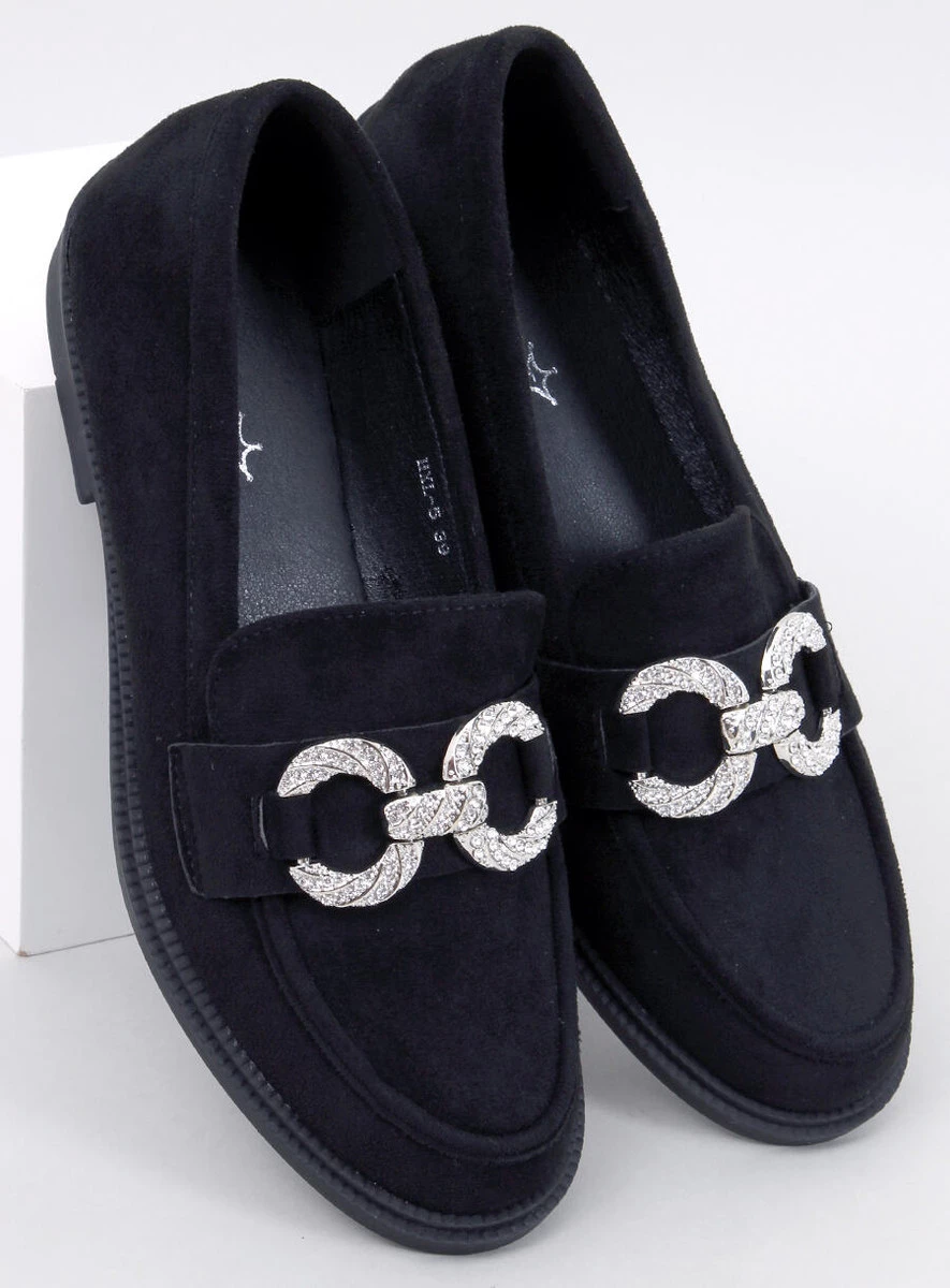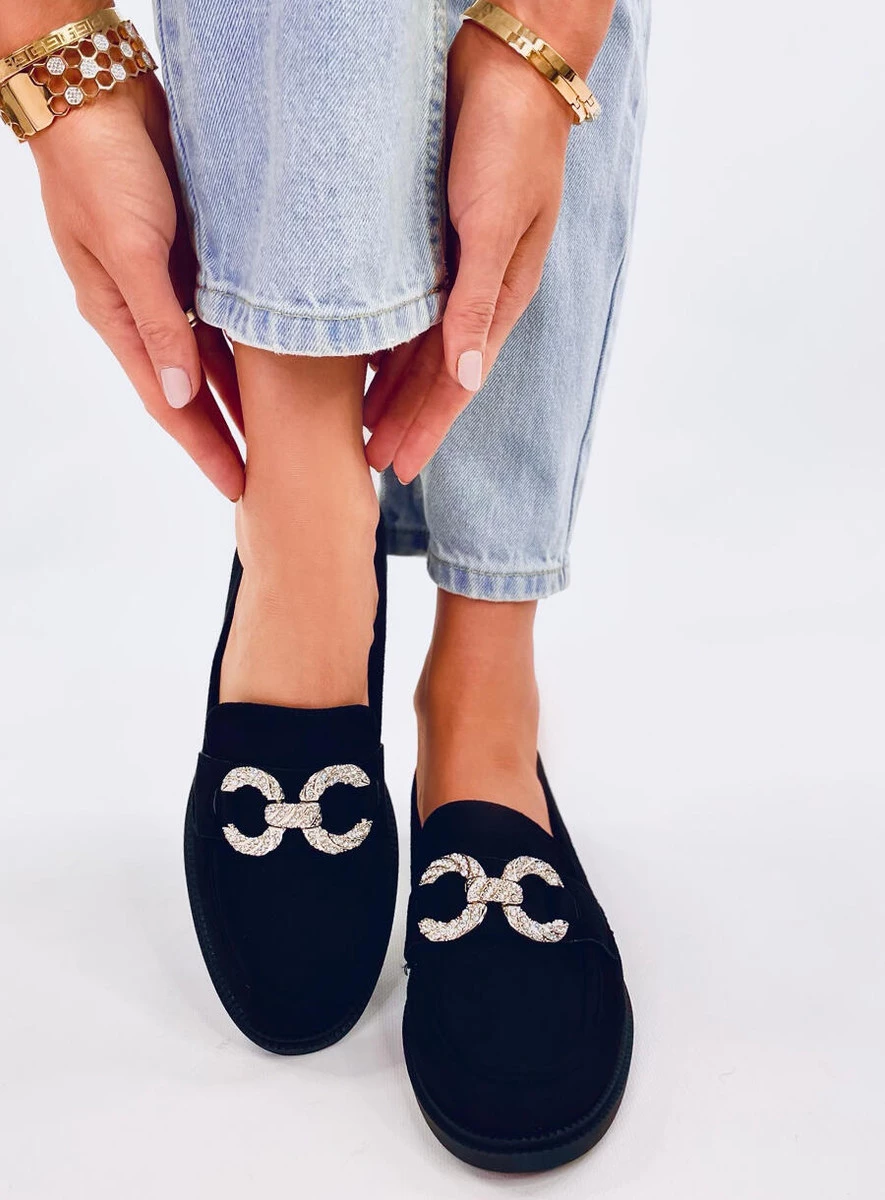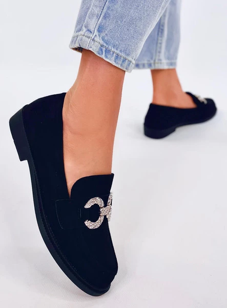 Zamszowe mokasyny damskie. Ten wyjątkowy model ma ponadczasowy, zgrabny fason i doskonale sprawdzi się w wielu sytuacjach. Stylową „kropkę nad i” stanowi efektowna ozdoba wysadzana błyszczącymi kamieniami – z pewnością przyciągną spojrzenia. Materiał zewnętrzny – zamsz ekologiczny.
