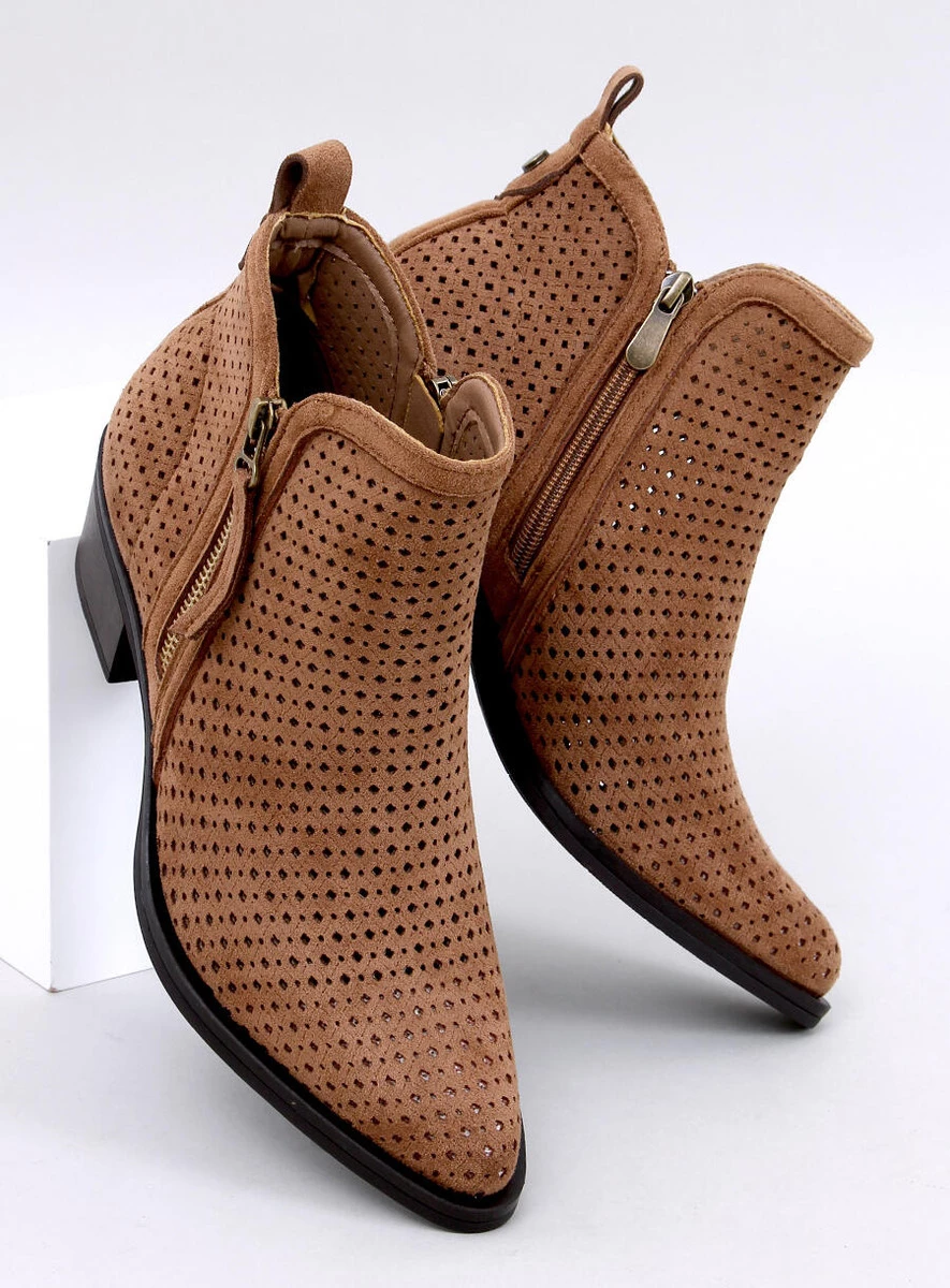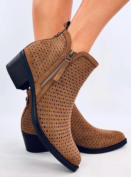Zamszowe botki damskie - kowbojki na szerokim obcasie o wysokości 5 cm. Model wyróżnia subtelne, ażurowe wykończenie oraz modne wycięcia... Nie dość, że świetnie wyglądają to jeszcze są bardzo wygodne i mają praktyczne zapięcie na suwak. Chyba już wiesz, które buty będą królowały w Twojej garderobie? : ) Materiał zewnętrzny - zamsz ekologiczny.