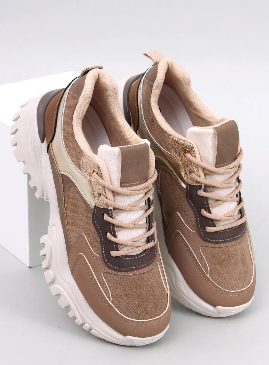 Sneakersy - buty sportowe damskie na wysokiej podeszwie. Uwielbiasz modne i ekstrawaganckie rozwiązania? To z pewnością są buty dla Ciebie! Najmodniejsze, różnorodne dodatki (m.in. metaliczne wstawki) z pewnością przyciągną spojrzenia. Wnętrze butów wyścielone jest tkaniną. Materiał zewnętrzny – skóra ekologiczna + zamsz ekologiczny.