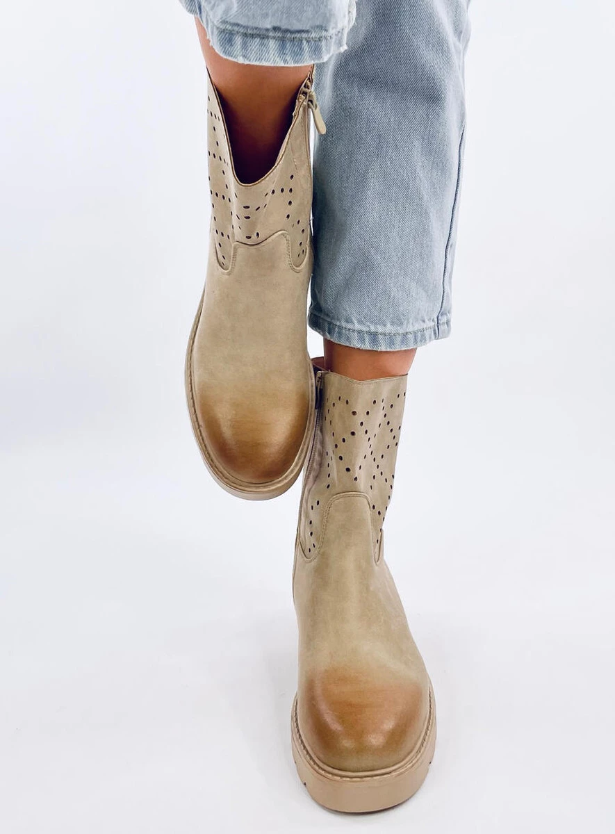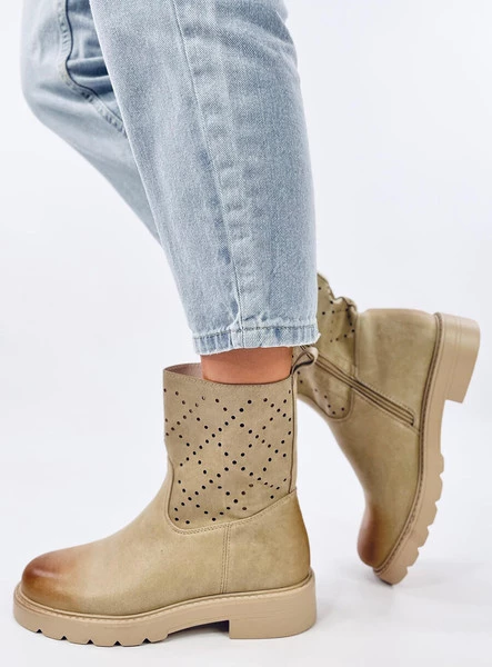 Botki damskie na płaskiej podeszwie. Ażurowa cholewka nadaje im lekkości modnego charakteru. Praktyczne zapięcie na zamek błyskawiczny zapewni szybkie i bezproblemowe zakładanie. Nie czekaj! Model bez ocieplacza, więc idealnie sprawdzi się na podczas przejściowych pór roku...
