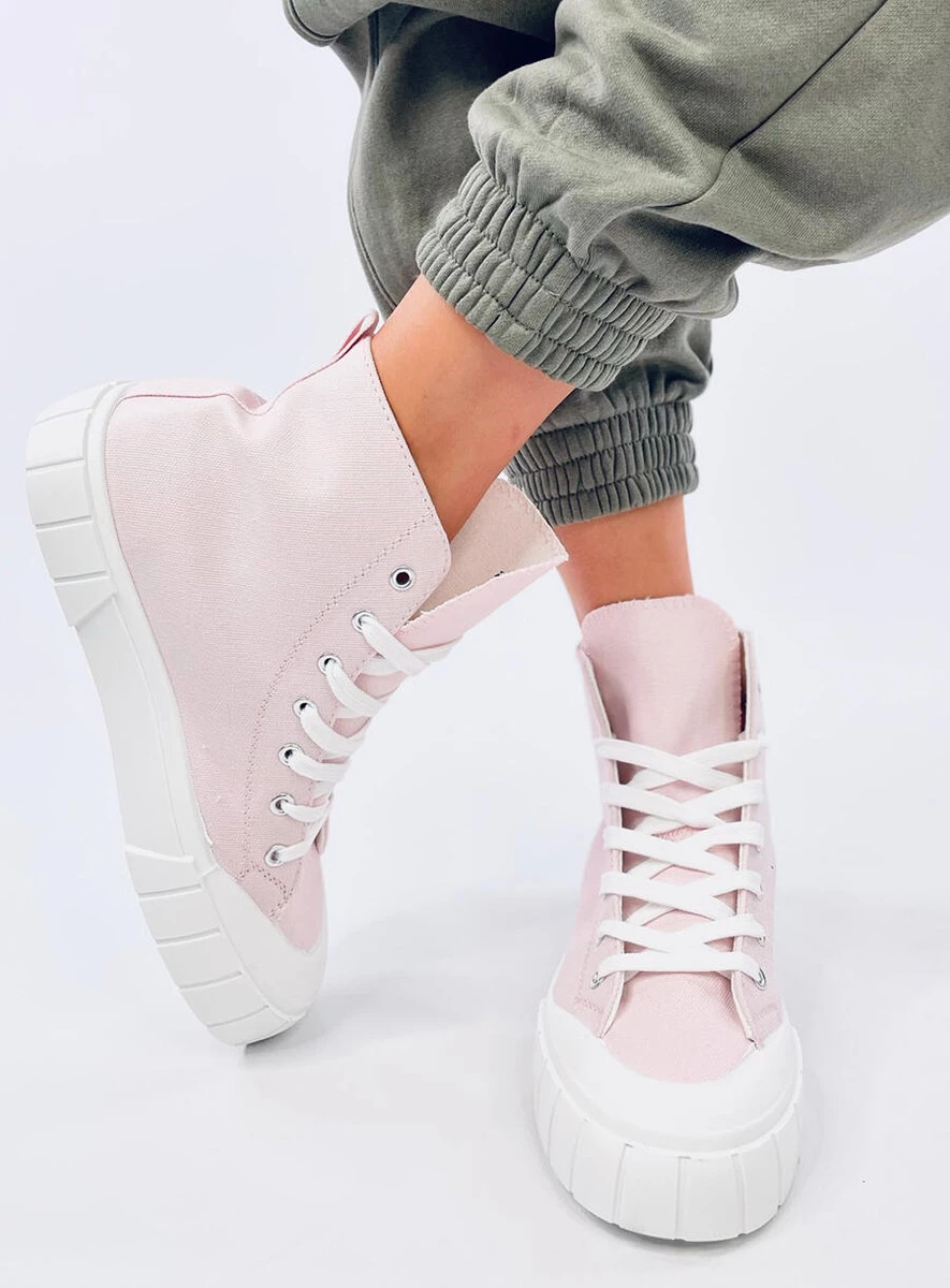 Płócienne trampki damskie za kostkę. Absolutny hit tego sezonu! Klasyczny fason oraz najmodniejsza, gruba podeszwa w białym kolorze sprawią, że wyróżnisz się z tłumu. Jeśli lubisz oryginalne rozwiązania to te buty są stworzone dla Ciebie! Materiał zewnętrzny i wewnętrzny  – tkanina.