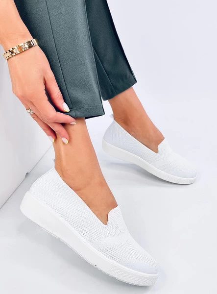 Tenisówki damskie typu slip-on na delikatnym podwyższeniu. Model wykonany jest z przewiewnej, skarpetkowej tkaniny o ażurowanym wzorze. Ponadto są lekkie i niesamowicie wygodne - przekonaj się o tym sama! Wkładka wewnętrzna - tkanina.