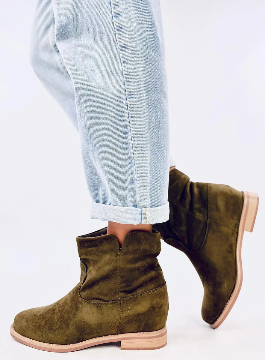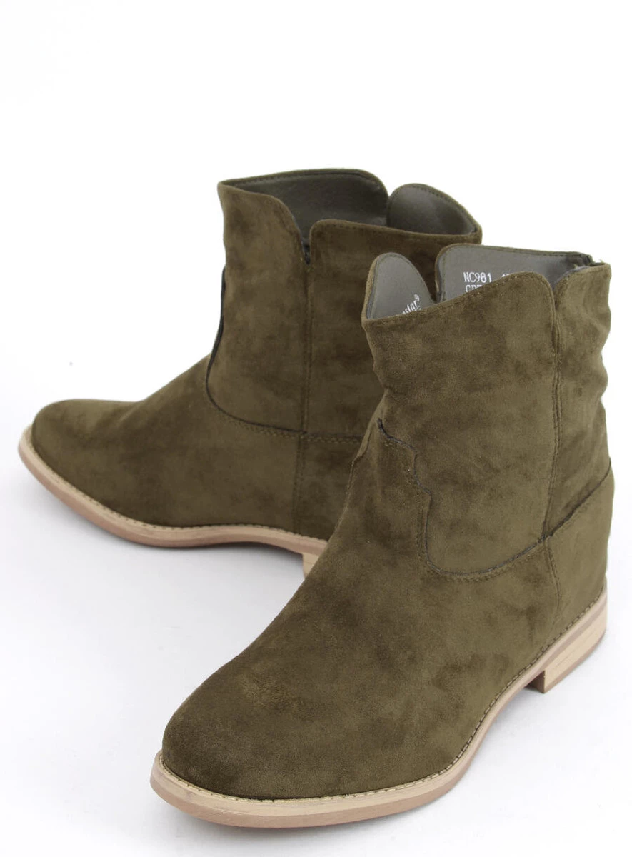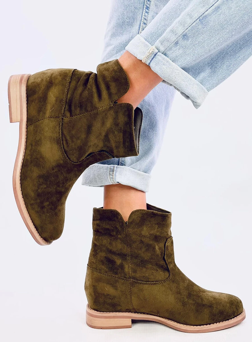Botki damskie na ukrytym koturnie o wysokości 5,5 cm. Idealnie będą pasować do jesiennych stylizacji... Te wyjątkowo wygodne botki to buty, obok których po prostu nie można przejść obojętnie! Wykonane są z bardzo miłego w dotyku zamszu ekologicznego, a wnętrze wyścielone jest delikatnym futerkiem. Nie czekaj i zamów już teraz!