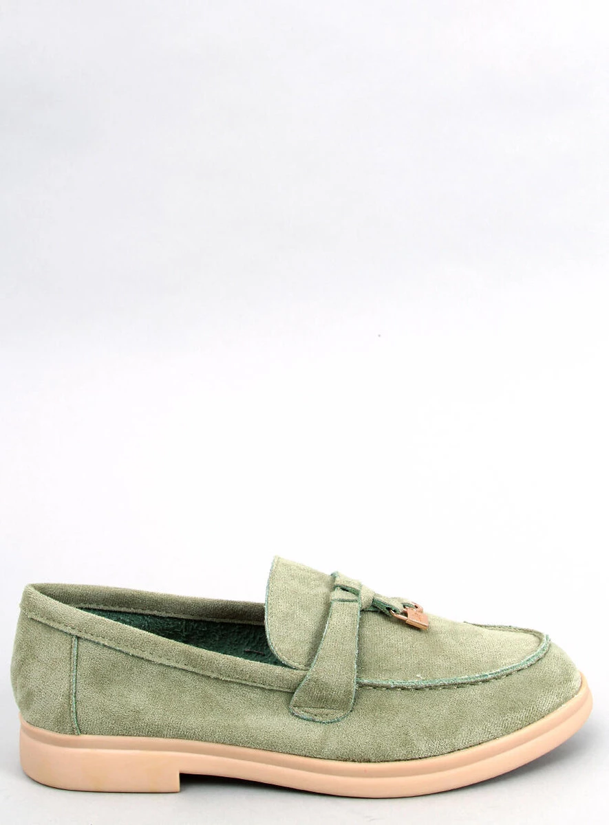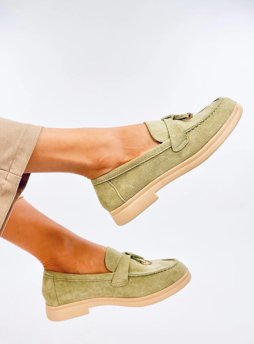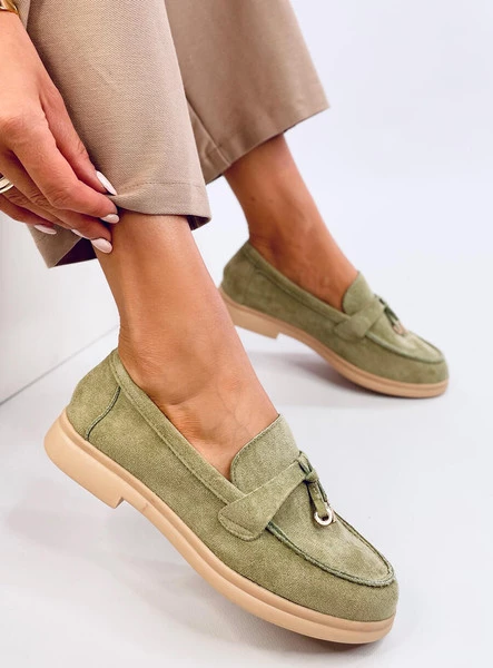 Zamszowe mokasyny damskie. Te buty urzekają klasycznym fasonem ze stylową, złotą aplikacją... Miękka wkładka wewnętrzna sprawi, że poczujesz niesamowity komfort nosząc te buty. Koniecznie przygarnij je do swojej szafy i ciesz się wygodą na każdym kroku : ) Materiał zewnętrzny – zamsz ekologiczny.