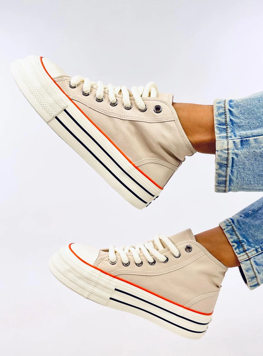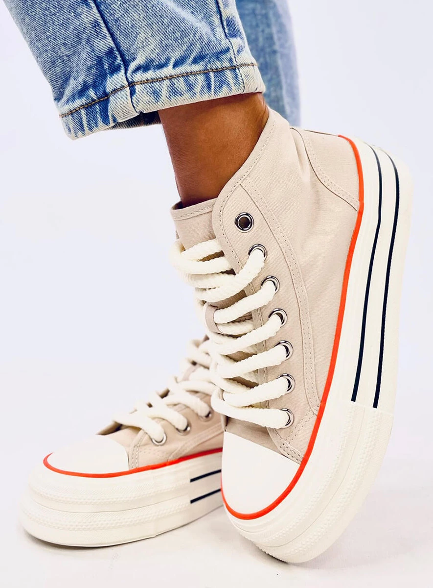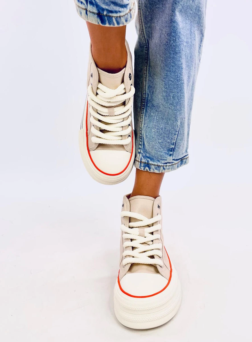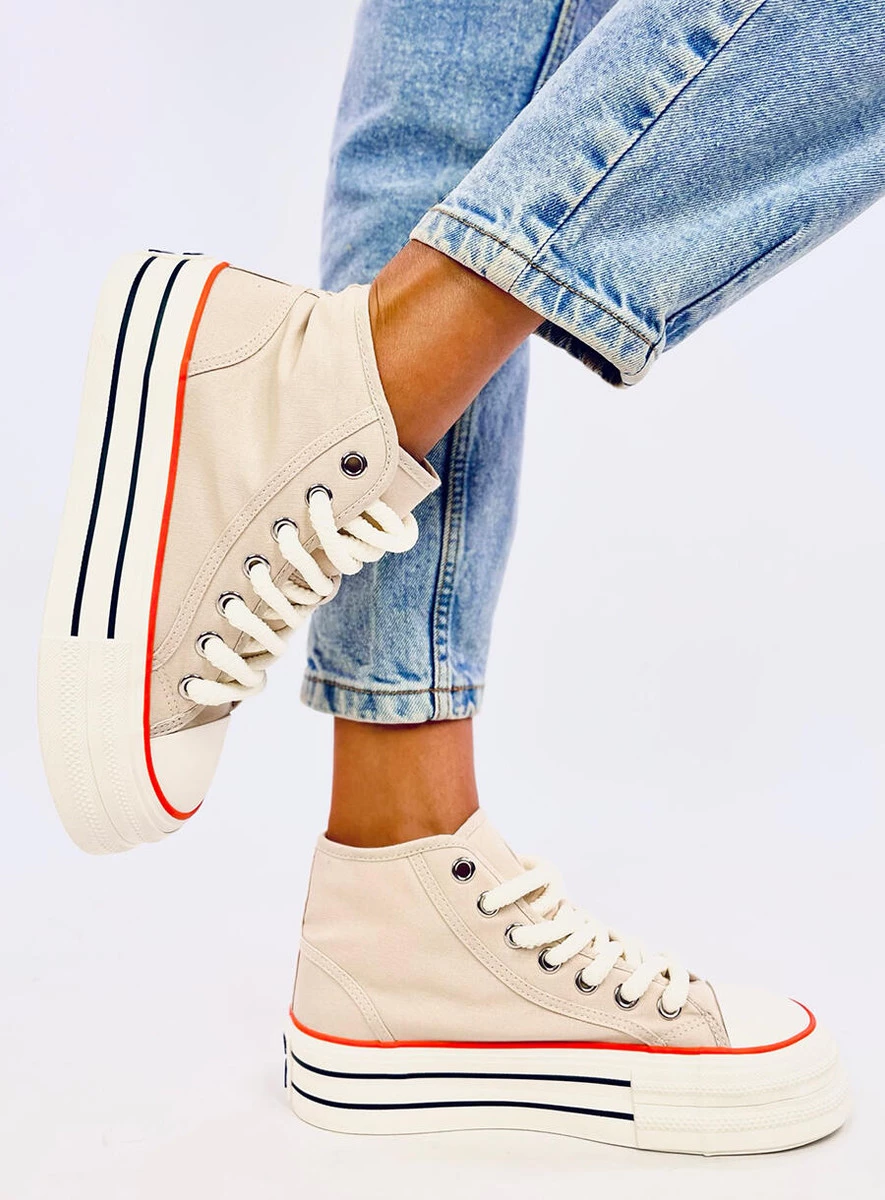 Trampki damskie za kostkę na platformie. Wzrok przyciąga najbardziej popularny fason z grubymi sznurówkami i wysoką podeszwą! Nie dość, że świetnie wyglądają to jeszcze są mega wygodne - nie czekaj i zamów je już dziś : ) Materiał zewnętrzny + wewnętrzny - tkanina.