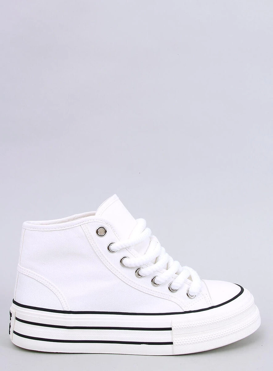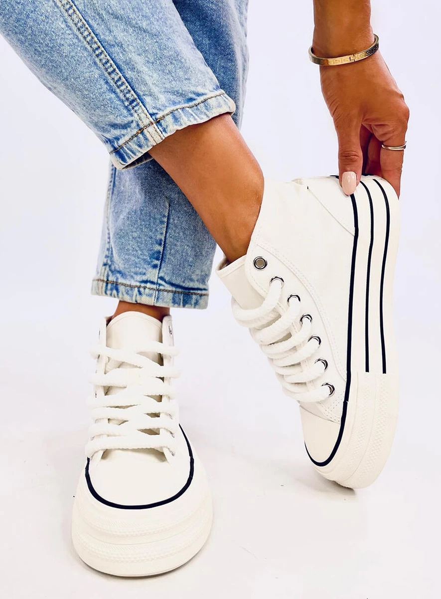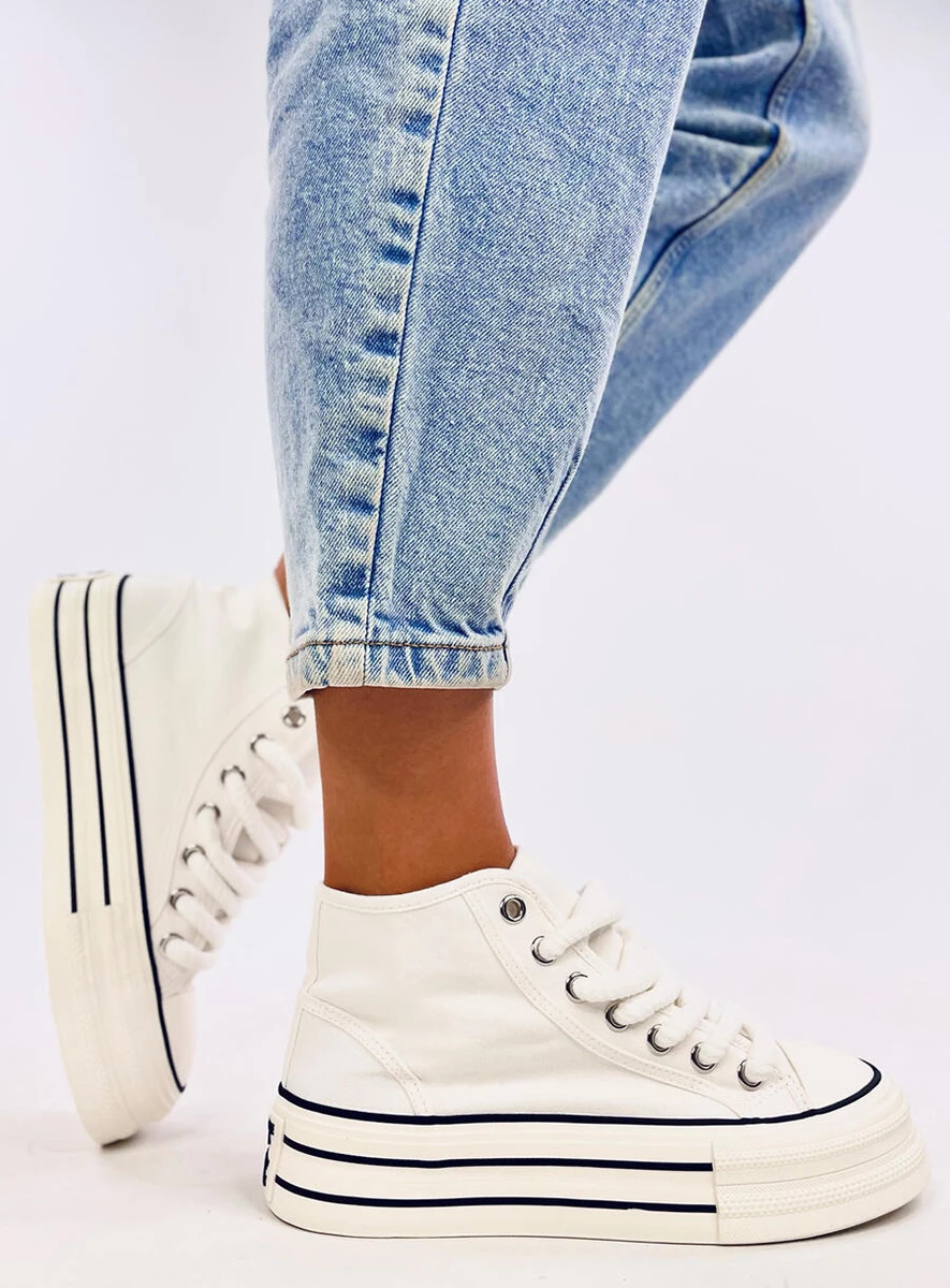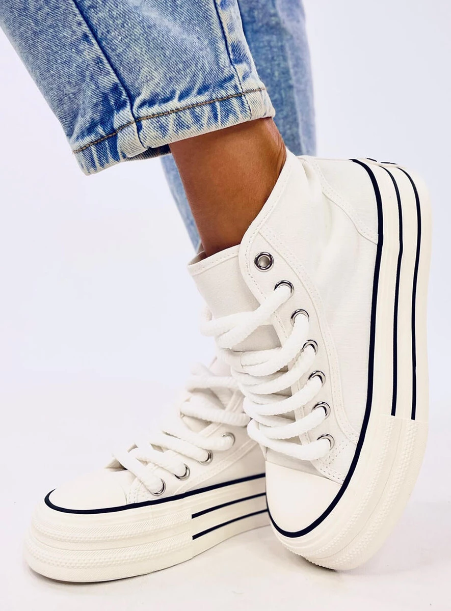 Trampki damskie za kostkę na platformie. Wzrok przyciąga najbardziej popularny fason z grubymi sznurówkami i wysoką podeszwą! Nie dość, że świetnie wyglądają to jeszcze są mega wygodne - nie czekaj i zamów je już dziś : ) Materiał zewnętrzny + wewnętrzny - tkanina.