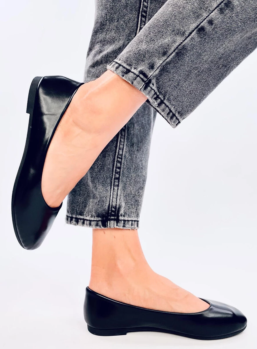 Klasyczne baleriny damskie. Fason z zaokrąglonymi noskami sprawia, że stopa zgrabnie się w nich prezentuje... To pozycja obowiązkowa w każdej kobiecej garderobie : ) Wygodę na każdym kroku zapewnia komfortowa, skórzana wkładka wewnętrzna. Materiał zewnętrzny – skóra ekologiczna.