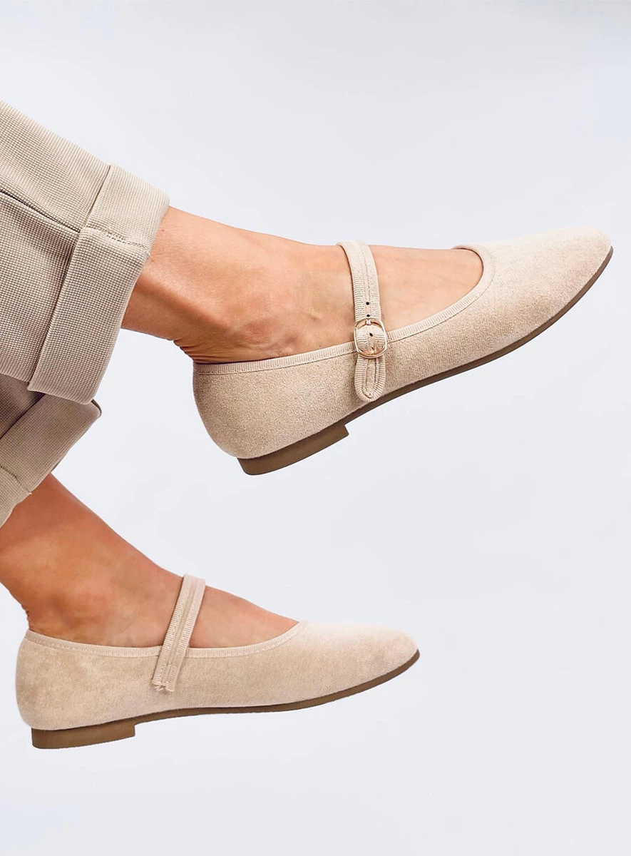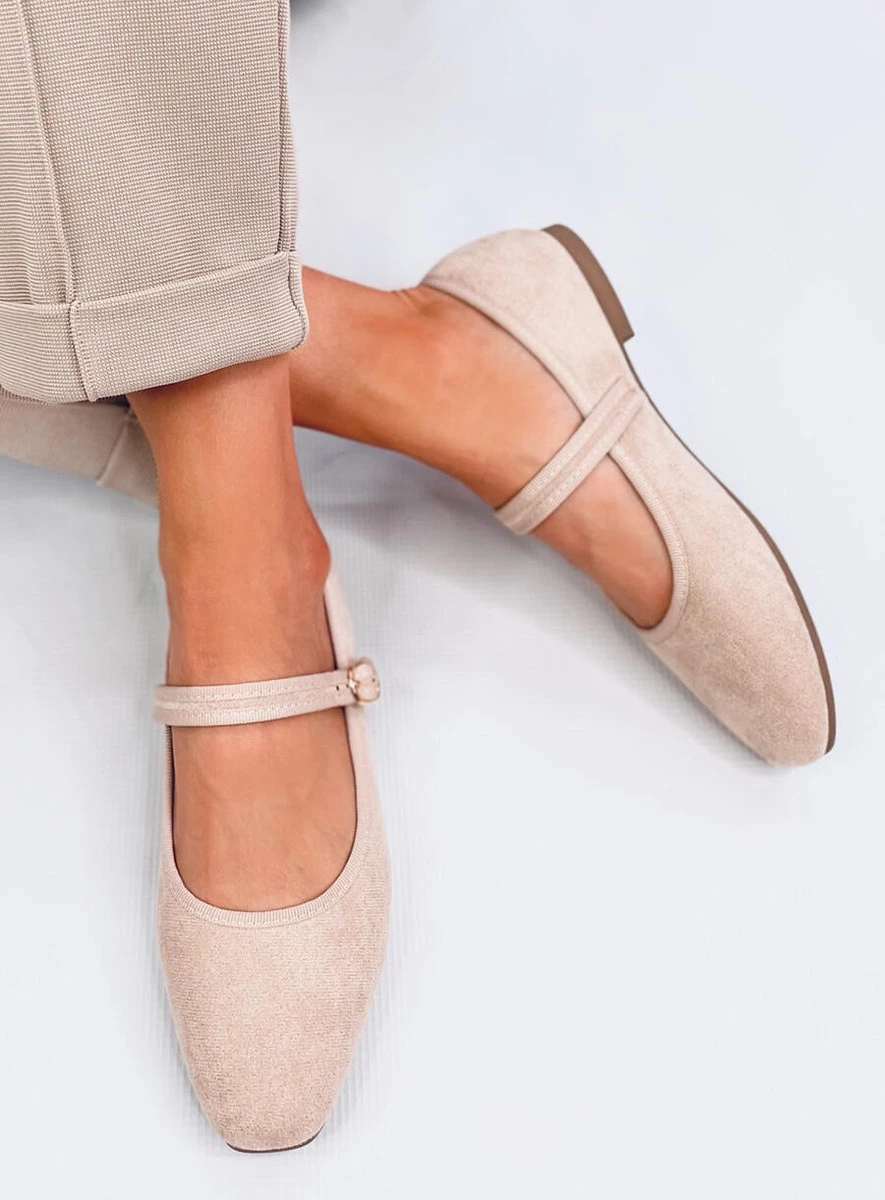 Zamszowe baleriny damskie z paseczkiem. Mają zgrabny fason w najmodniejszym stylu Mary Jane. Jeśli śledzisz aktualne trendy i cenisz sobie wygodę, to te buty są stworzone dla Ciebie : ) Materiał zewnętrzny - zamsz ekologiczny.