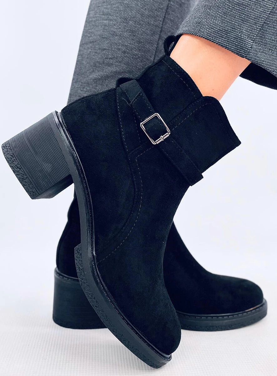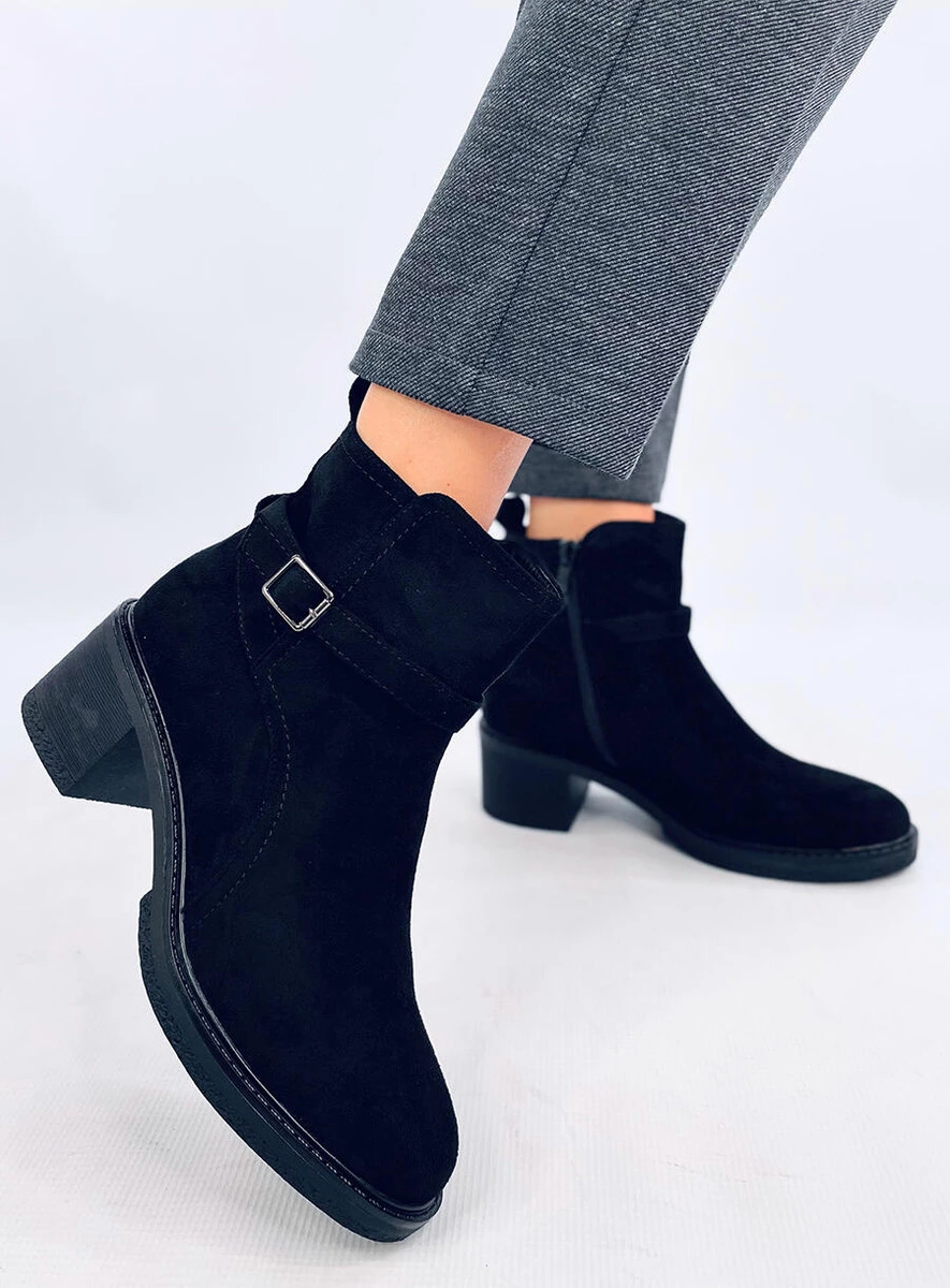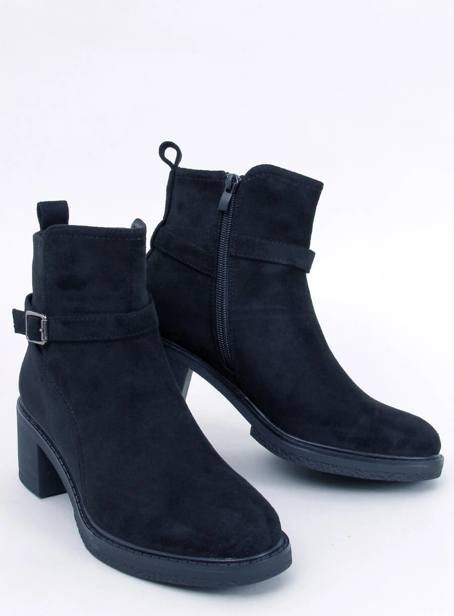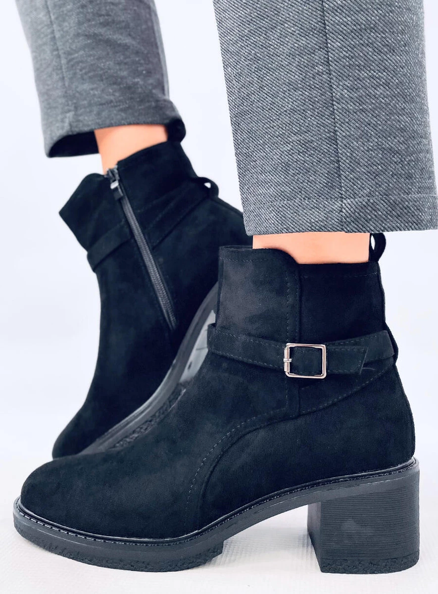 Botki damskie na szerokim obcasie o wysokości 5,5 cm. To ponadczasowy model, który doskonale sprawdzi się w każdej codziennej sytuacji : ) Wygodnym rozwiązaniem jest zapięcie na zamek błyskawiczny z boku cholewki. Nie daj się dłużej namawiać : ) Wykonane są z zamszu ekologicznego, a wnętrze wyścielone jest delikatnym futerkiem.