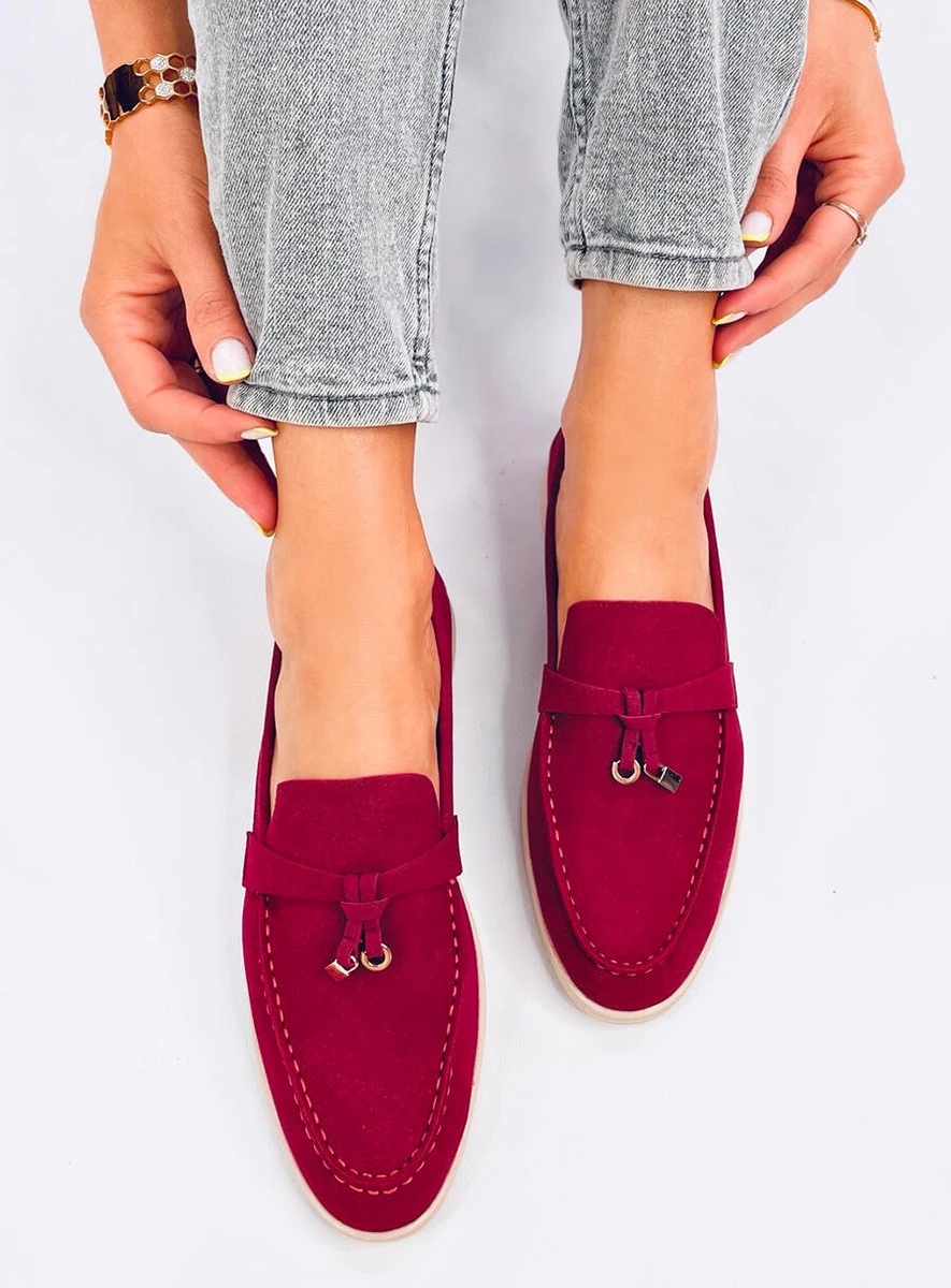 Klasyczne mokasyny damskie. Dzięki subtelnej ozdobie z przodu zyskują niepowtarzalny urok... W tych butach zawsze będziesz czuła się modnie i wygodnie - przekonaj się o tym sama! Materiał zewnętrzny - nubuk ekologiczny.