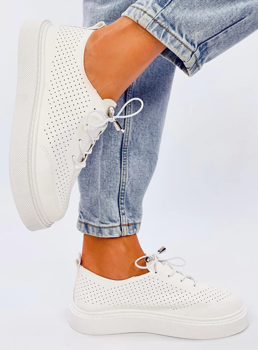 Trampki damskie ażurowe. Wykonane są z delikatnej skóry ekologicznej o dziurkowanej fakturze. Najmodniejsza, wysoka podeszwa tych butów sprawi, że zechcesz zabrać je na każdy spacer : ) Zgrabnie prezentują się na nodze i są niesamowicie wygodne... Wkładka wewnętrzna - tkanina.