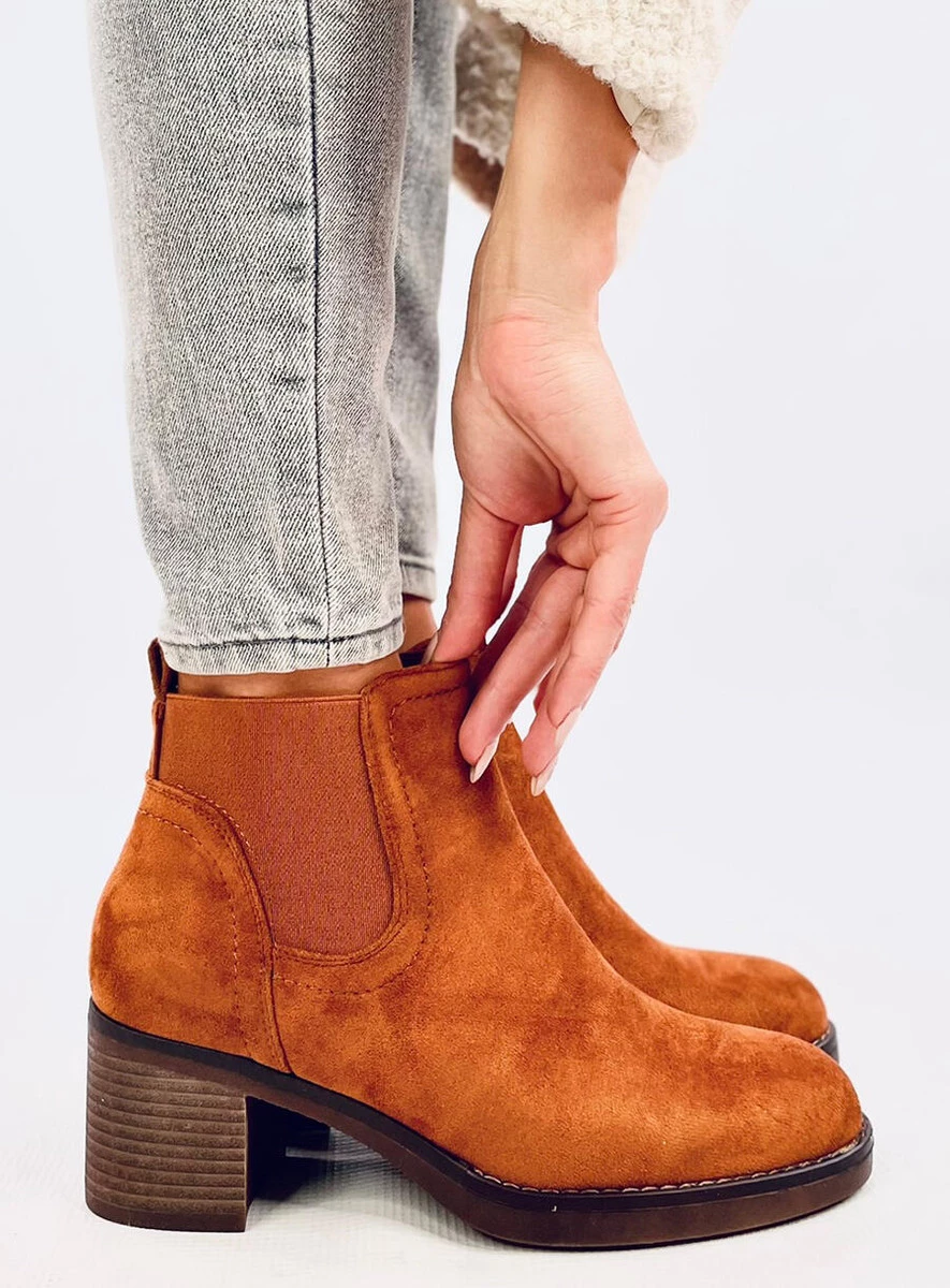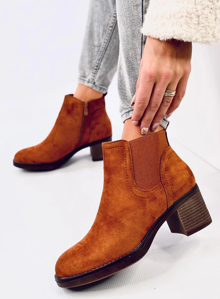 Botki damskie na szerokim obcasie o wysokości 6 cm. To klasyczny model, który doskonale sprawdzi się w każdej codziennej sytuacji : ) Wygodnym rozwiązaniem jest zapięcie na zamek błyskawiczny z boku cholewki, a ciekawym elementem jest elastyczna wstawka nawiązująca do sztybletów. Nie daj się dłużej namawiać : ) Wykonane są z zamszu ekologicznego, a wnętrze wyścielone jest delikatnym futerkiem.