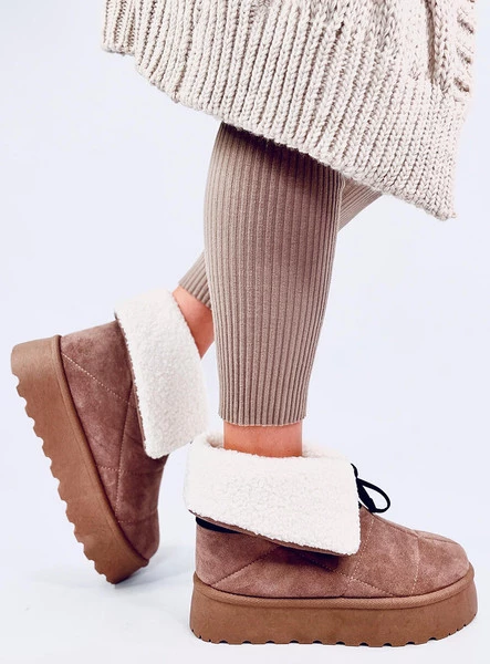 Zamszowe śniegowce damskie z kożuszkiem. Jakie są idealne buty na zimowe szaleństwo? Oczywiście ocieplane śniegowce na wysokiej podeszwie (4 cm) świetnie izolującej od podłoża! Buty można nosić na dwa sposoby - z prostą lub wywiniętą cholewką. Na pewno sprostają Twoim wymaganiom : ) Materiał zewnętrzny – zamsz ekologiczny.