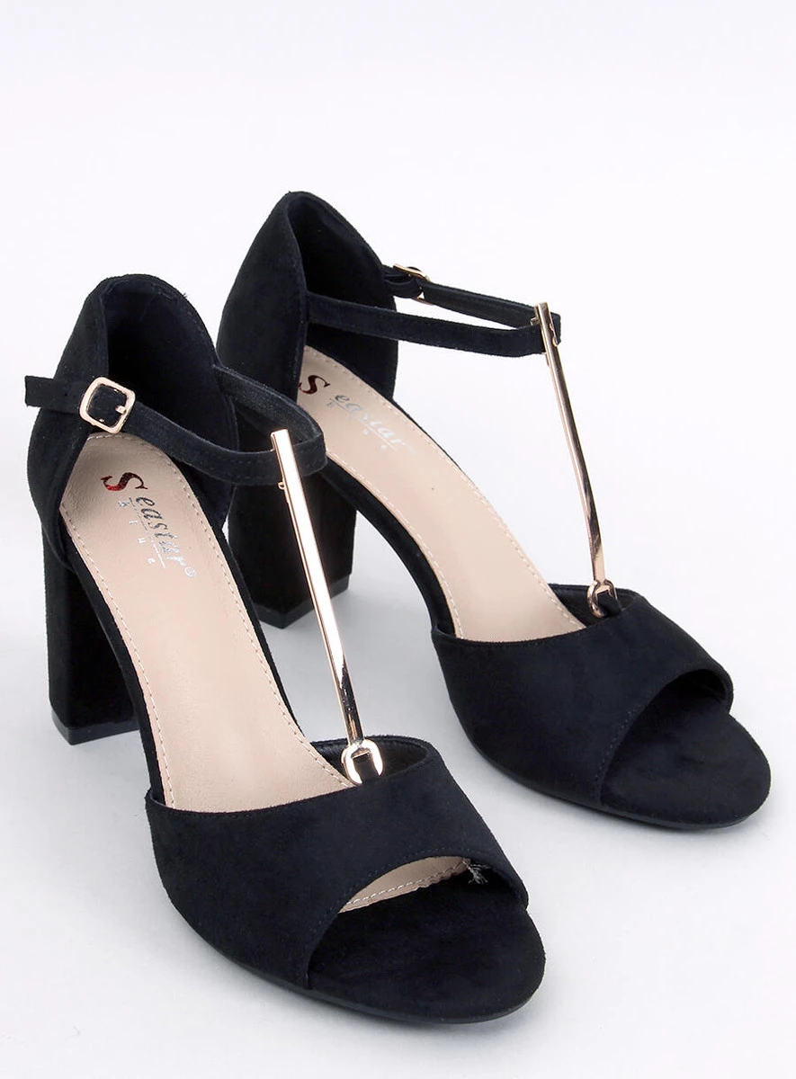Opinie o Sandałki na obcasie ze złotą ozdobą FERDI BLACK
