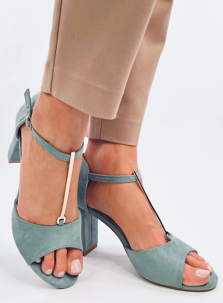 Zamszowe sandałki damskie na słupku. Złota ozdoba pięknie podkreśla stopę, a regulowane zapięcie zgrabnie oplata kostkę. Kobiecy fason tego modelu niewątpliwie dopełnia obcas o wysokości 8,5 cm, który wysmukli Twoją sylwetkę... Jeśli chcesz wyglądać wyjątkowo to musisz je mieć! Materiał zewnętrzny - zamsz ekologiczny.