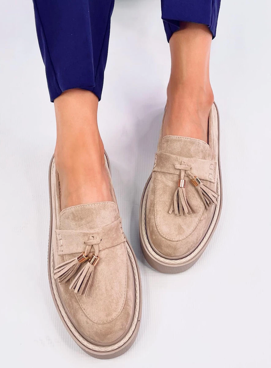 Mokasyny na platformie z frędzelkami TRINITY BEIGE
