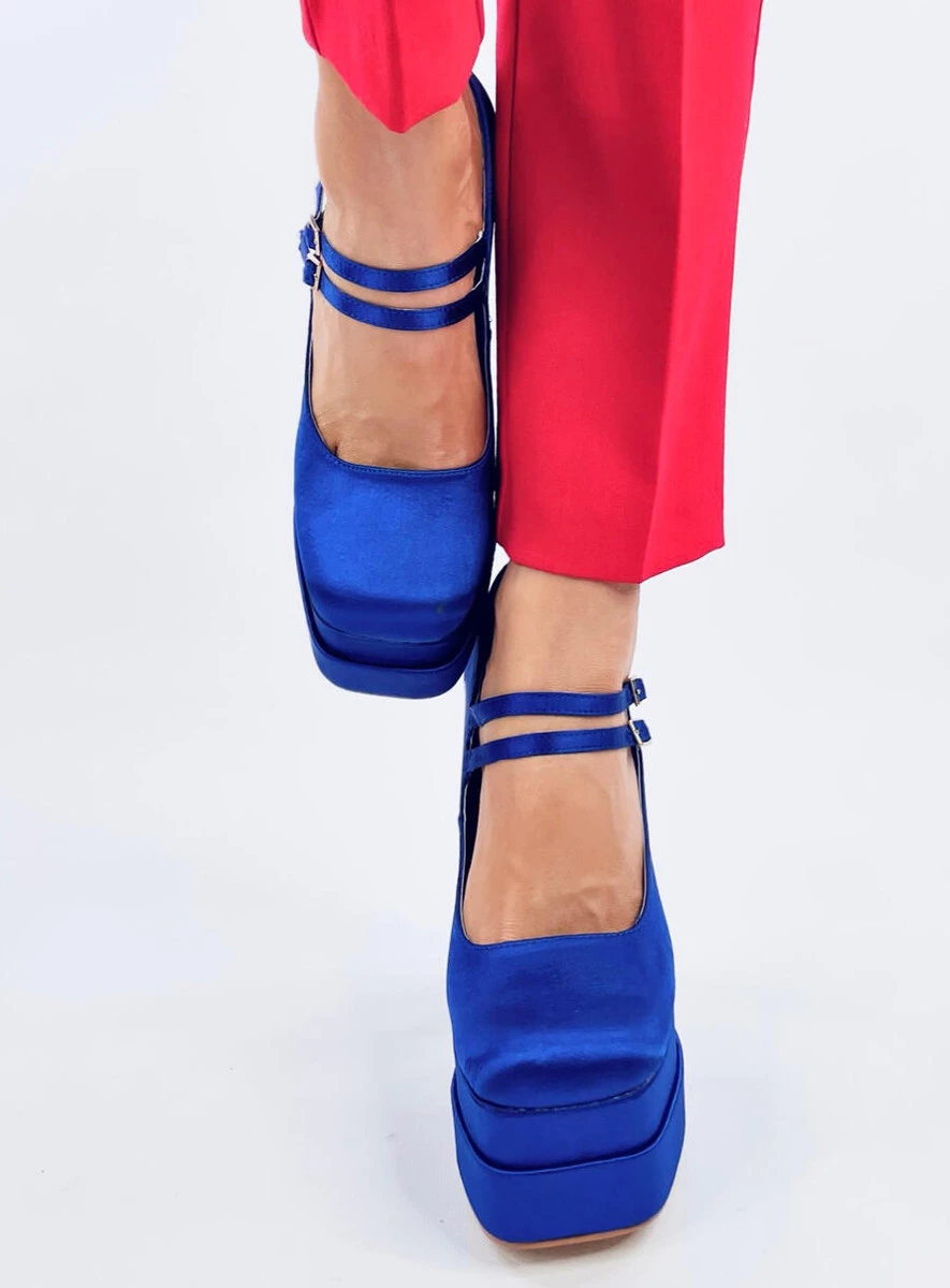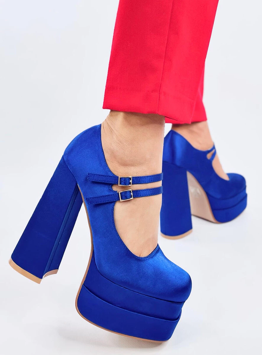 Damskie Czółenka PRANDI BLUE to połączenie wyrazistego, błękitnego koloru z charakterystycznym, retro fasonem. Masywna platforma i wysoki słupek zapewniają stabilność oraz komfort, a podwójny pasek ze sprzączkami nadaje całości niepowtarzalnego stylu. Wierzch wykonany z tkaniny satynowej nadaje butom subtelnego połysku, dzięki czemu świetnie sprawdzą się jako mocny akcent w wieczorowych i imprezowych stylizacjach.