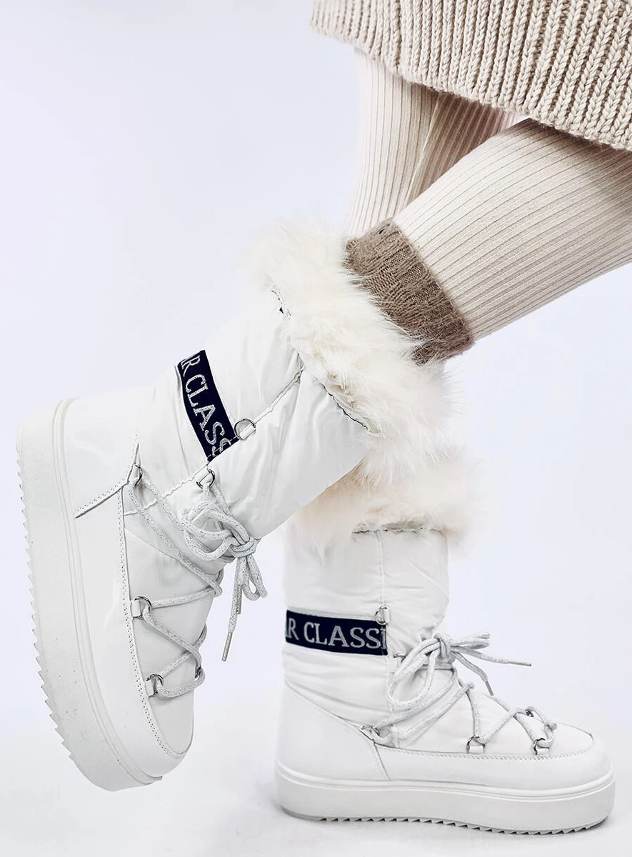 Śniegowce damskie na wysokiej podeszwie. Jeśli szukasz idealnych butów na zimę to ten ocieplony grubym futerkiem model jest stworzony dla Ciebie : ) Dodatkowe futerko podkreśla ich wyjątkowy styl... Wysoka podeszwa zapewni świetną izolację od podłoża, a także wygodę na każdym kroku. Materiał zewnętrzny – skóra ekologiczna lakierowana + tkanina ortalionowa.
