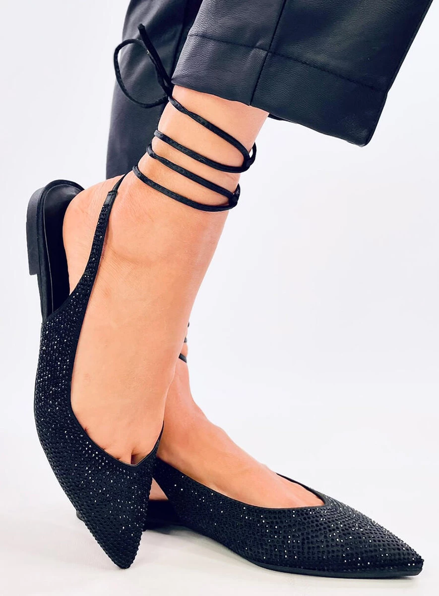 Baleriny z cyrkoniami odkrytą pięta VONDA BLACK