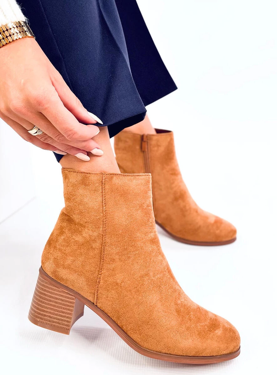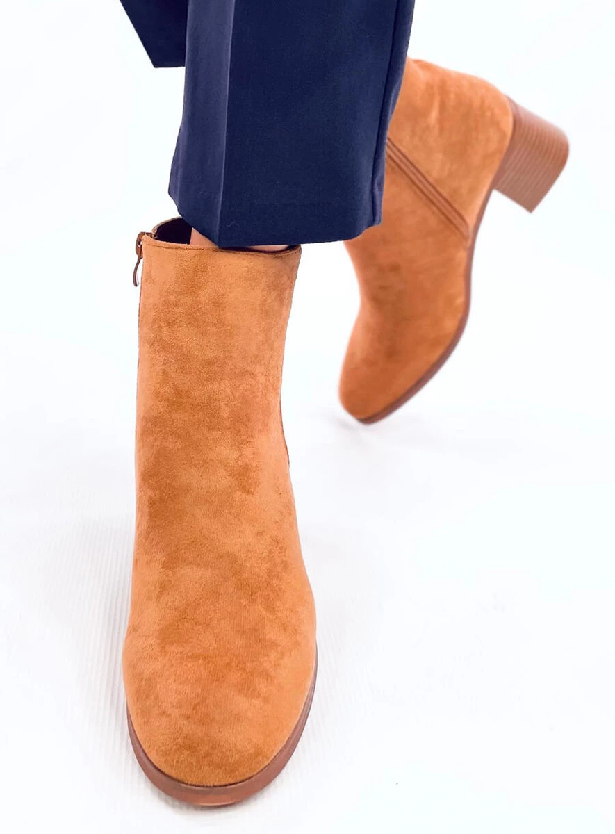 Zamszowe botki damskie. Ten ponadczasowy model na szerokim obcasie o wysokości 5,5 cm na pewno zachwyci wielbicielki wygody : ) Przekonaj się sama jak wyjątkowo poczujesz się w tych butacj! Ich niewątpliwa zaleta to praktyczne zapięcie na zamek błyskawiczny z boku cholewki. Wykonane są z zamszu ekologicznego, a wnętrze wyścielone delikatnym futerkiem.