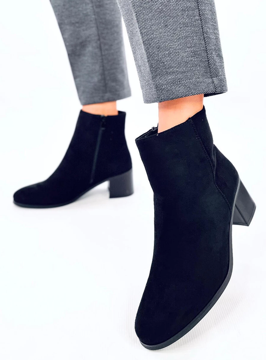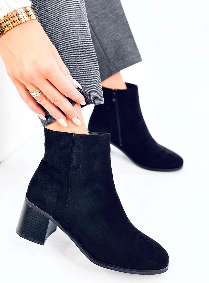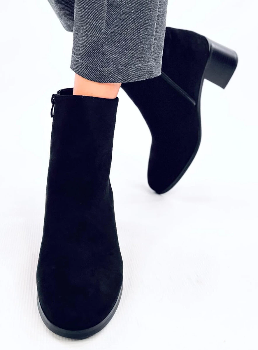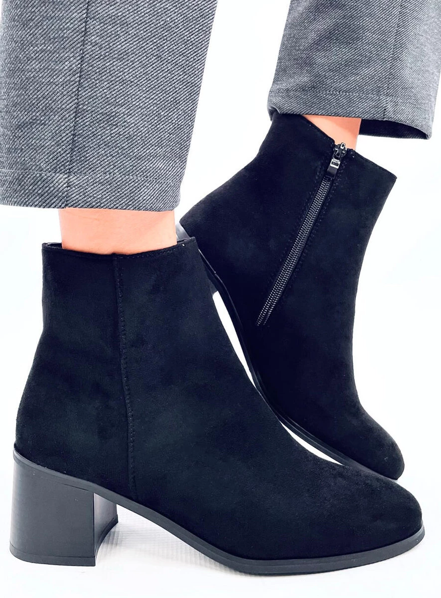 Zamszowe botki damskie. Ten ponadczasowy model na szerokim obcasie o wysokości 5,5 cm na pewno zachwyci wielbicielki wygody : ) Przekonaj się sama jak wyjątkowo poczujesz się w tych butacj! Ich niewątpliwa zaleta to praktyczne zapięcie na zamek błyskawiczny z boku cholewki. Wykonane są z zamszu ekologicznego, a wnętrze wyścielone delikatnym futerkiem.