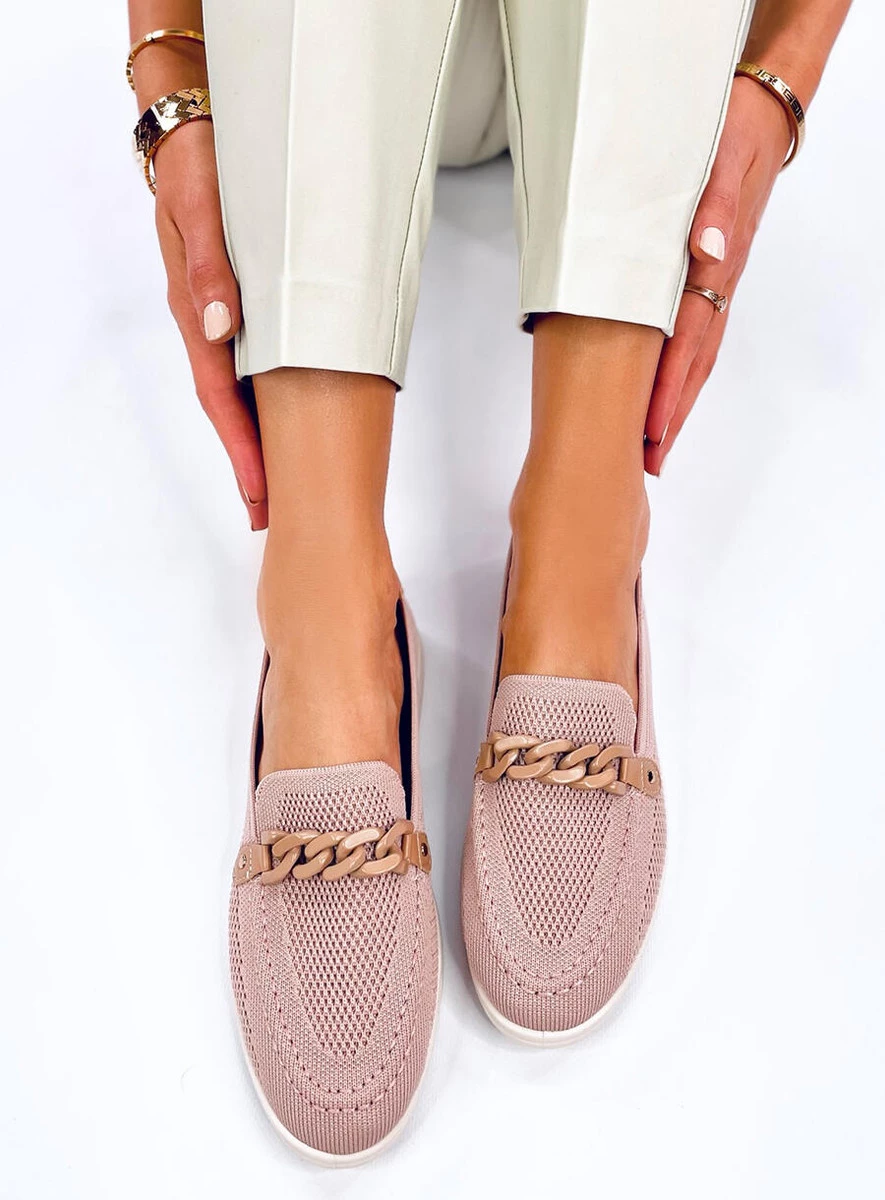 Ażurowe mokasyny damskie. W tych butach można się zakochać : ) Subtelny, a zarazem przewiewny wzór oraz efektowny łańcuch przyciąga spojrzenia. Są niezwykle wygodne, mają wkładkę wewnętrzną z mięciutką poduszeczką, dlatego nie będziesz chciała ich zdjąć z nóg... Materiał zewnętrzny – tkanina.