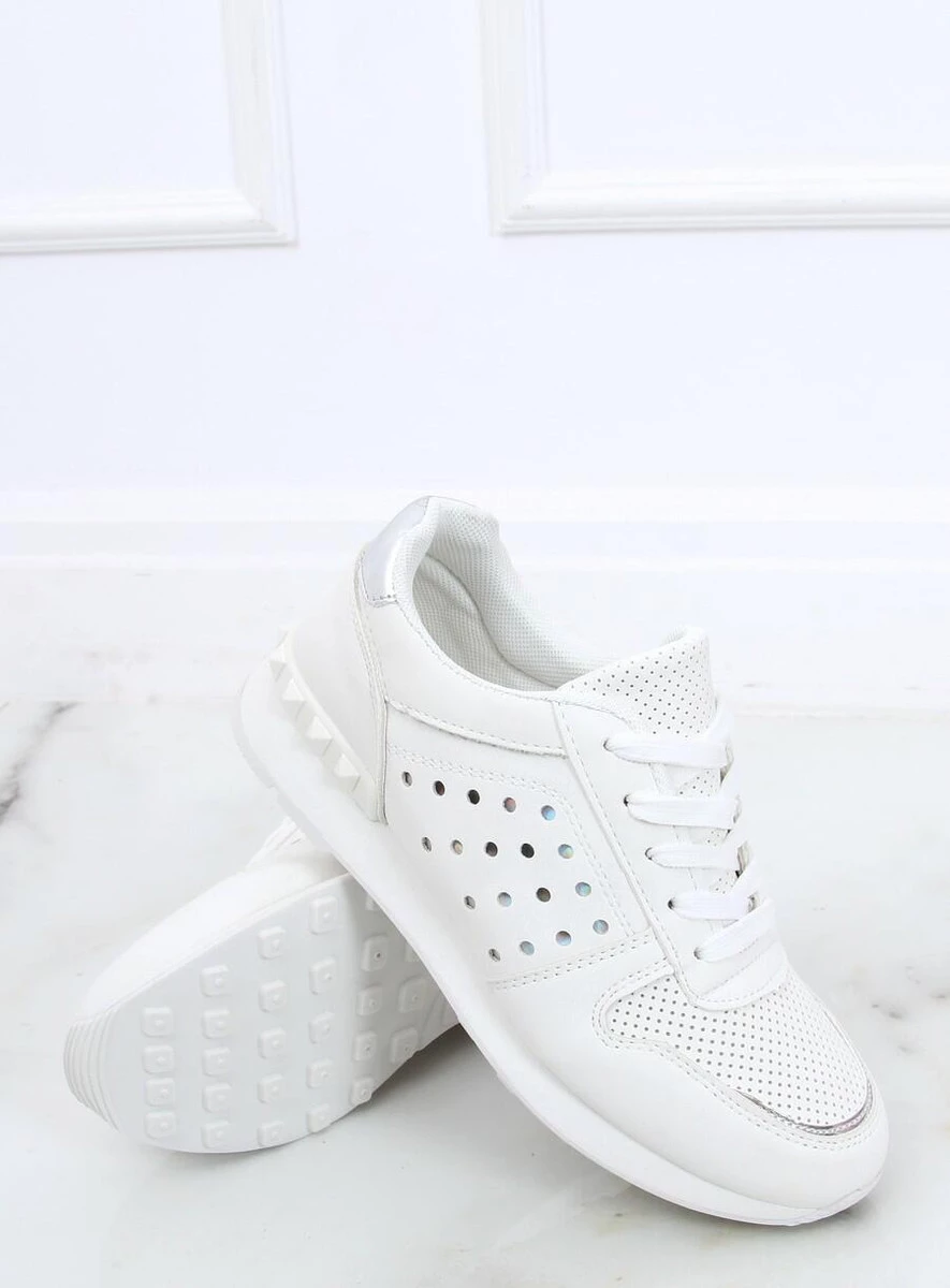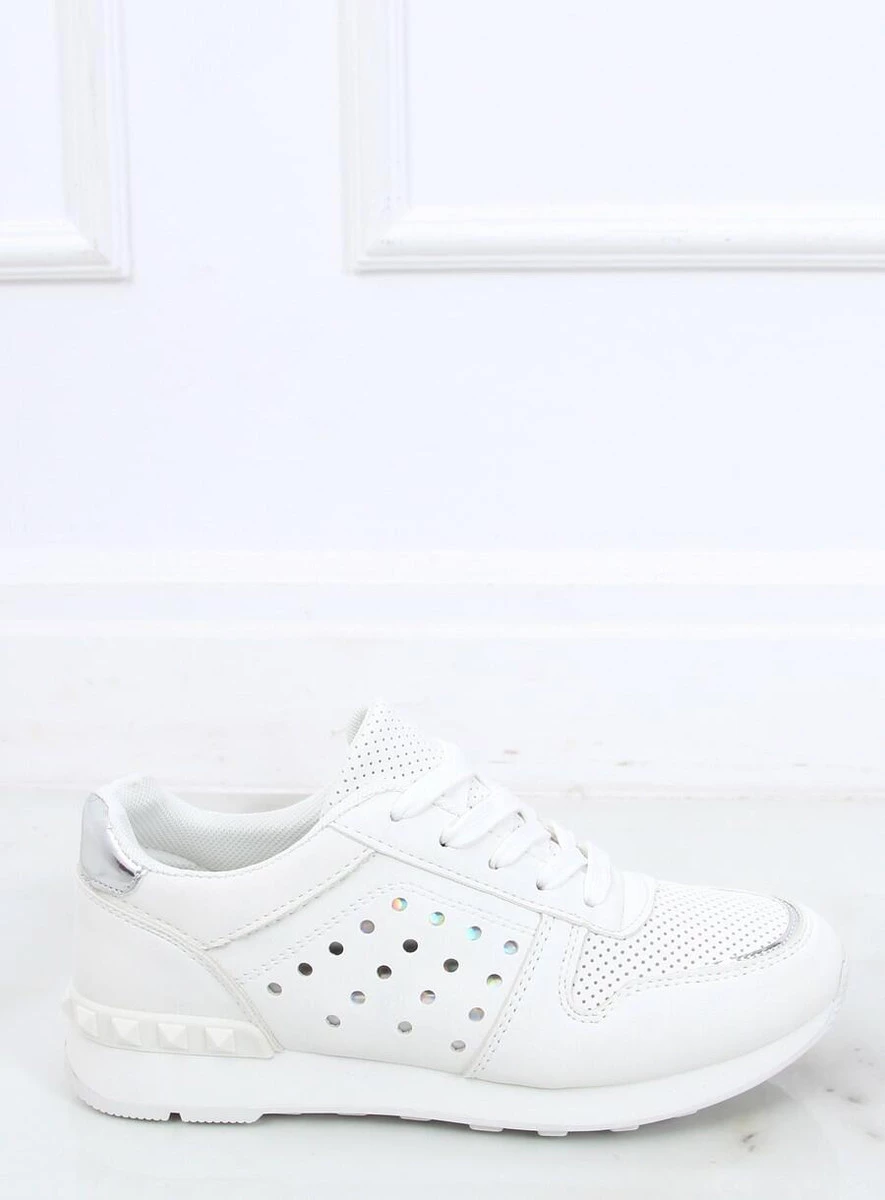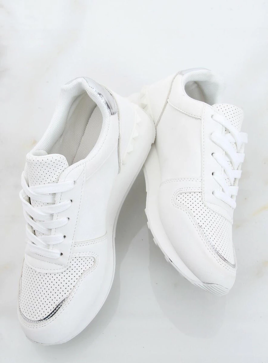 Buty sportowe damskie wykonane z mieniącej się skóry ekologicznej. Te buty urzekają klasycznym sportowym fasonem połączonym z modnymi, przyciągającymi wzrok detalami – ćwiekami wokół podeszwy oraz holograficznymi kółeczkami. Stwórz z tymi butami niepowtarzalne stylizacje! Mają „to coś”! : ) Wnętrze wyścielone jest tkaniną
