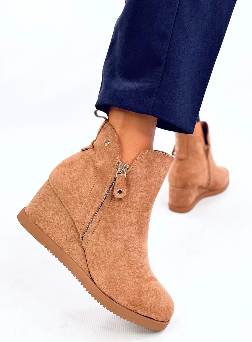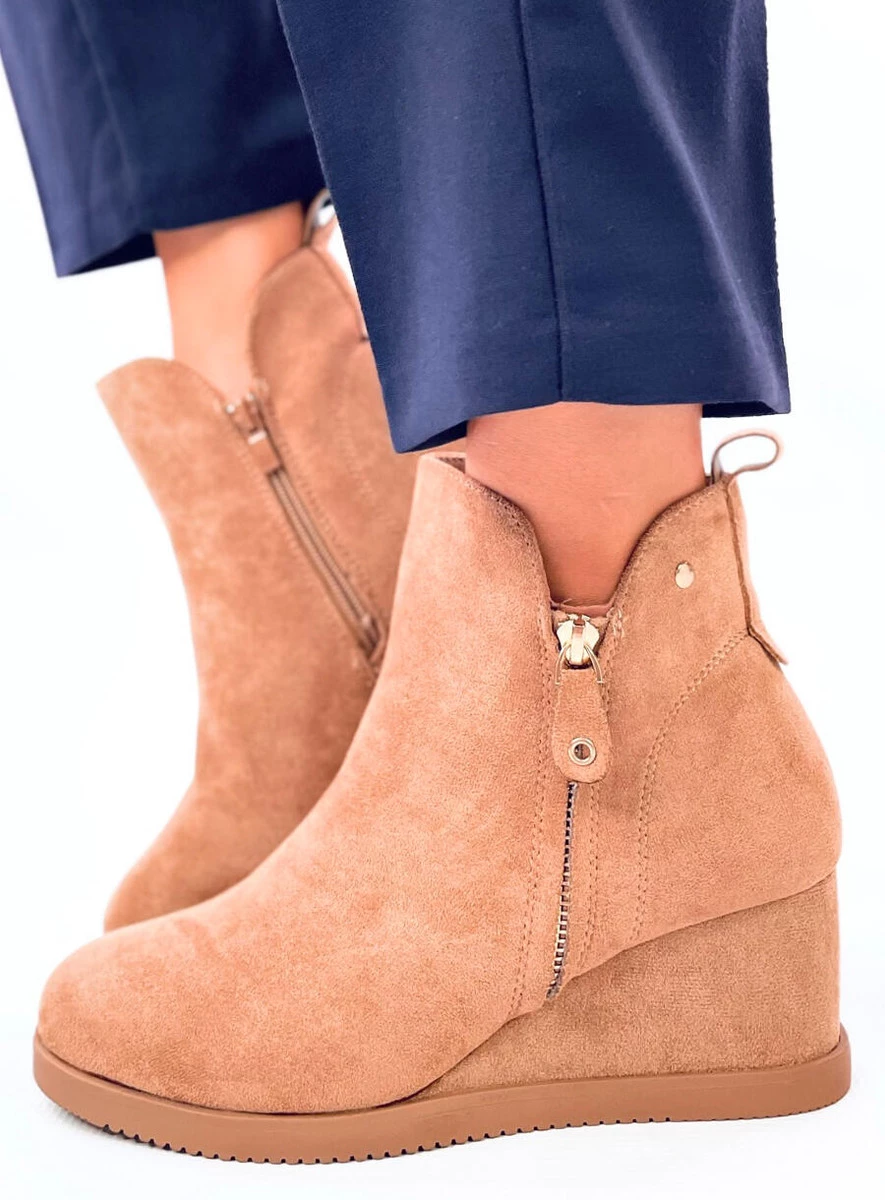 Opinie o Botki na koturnie zamszowe PAXTEN CAMEL