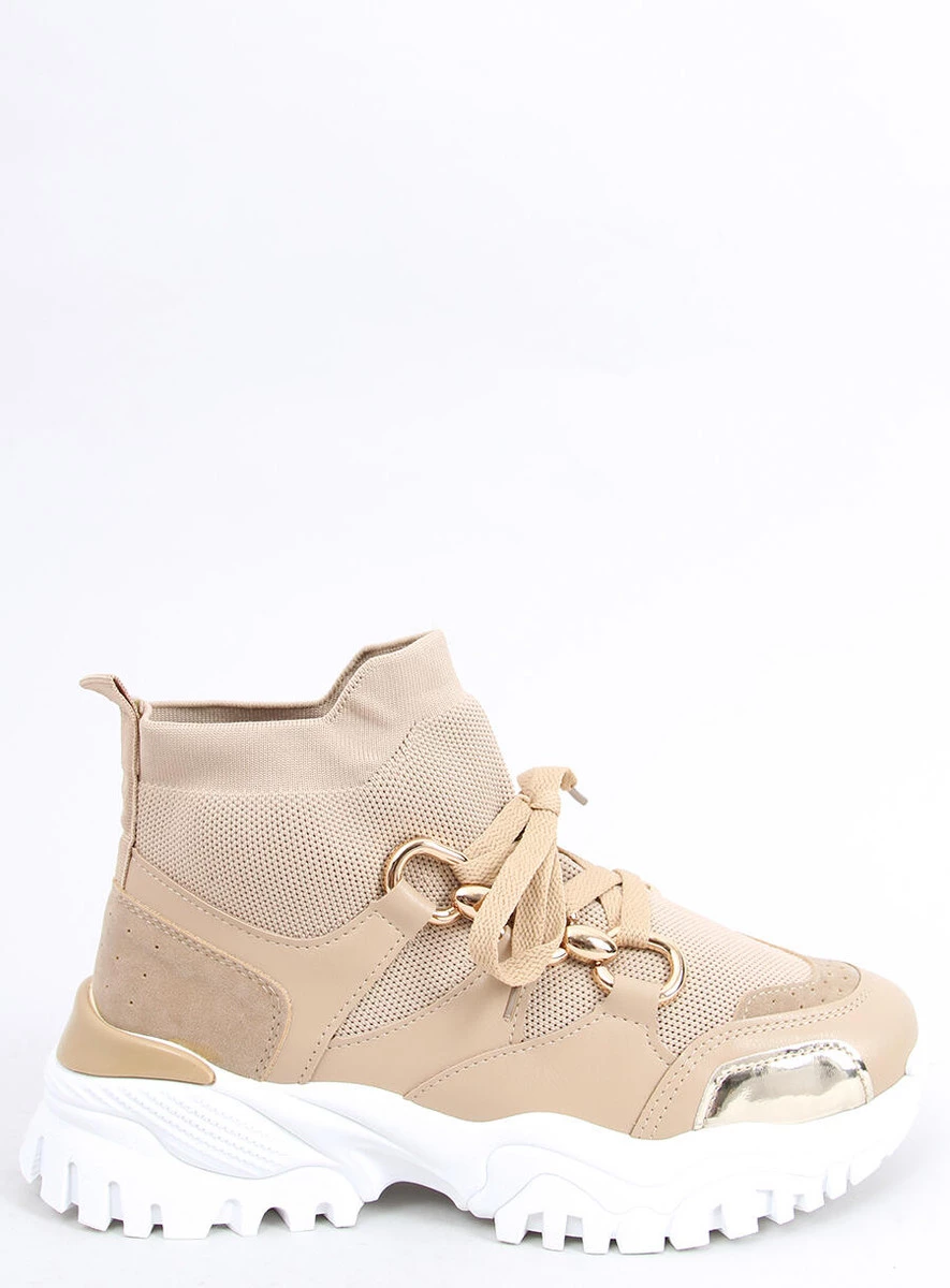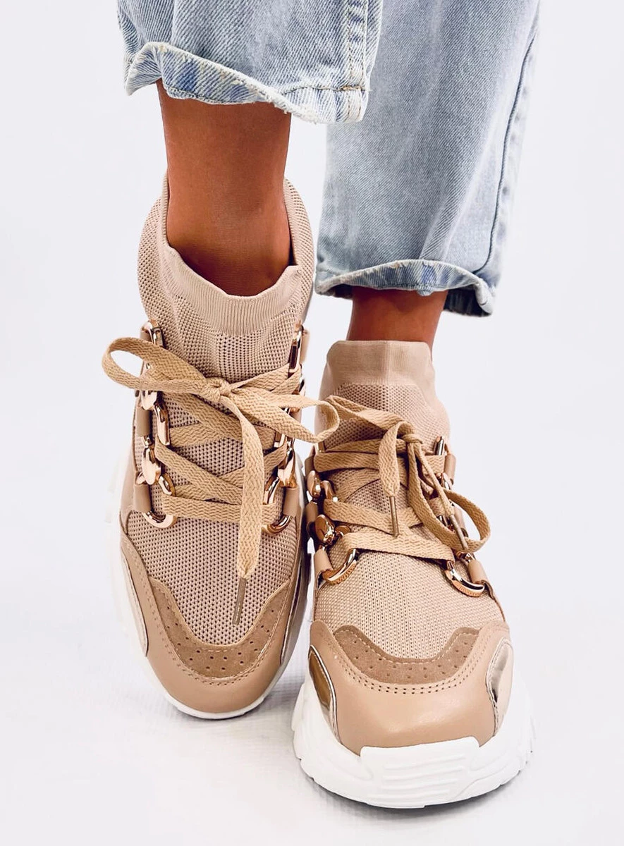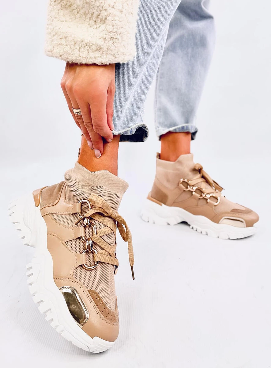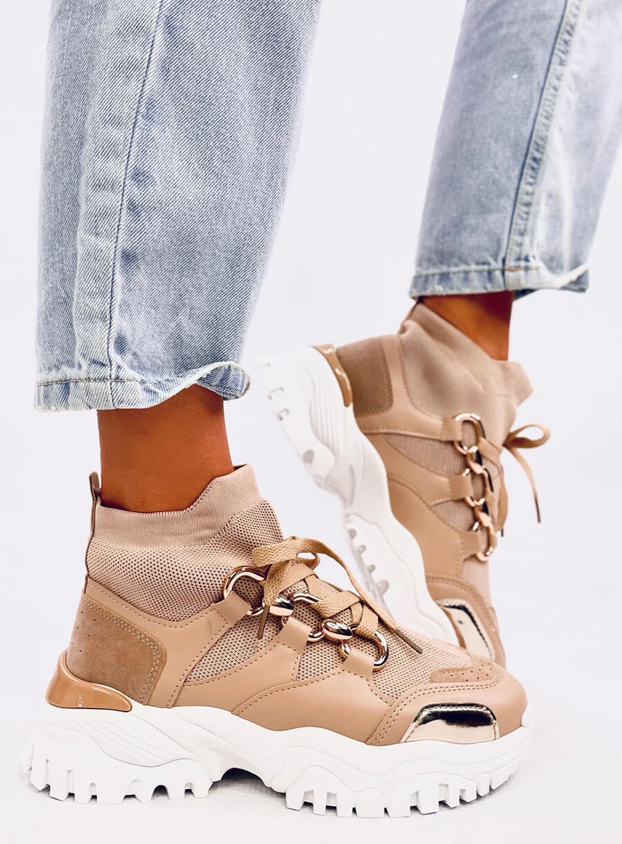 Buty sportowe - sneakersy damskie za kostkę. Mają najmodniejszy design na grubej podeszwie i ze złotymi dodatkami - potrafią zawrócić w głowie! Elastyczna, skarpetkowa cholewka zapewnia komfortowe zakładanie. To niekwestionowany hit! Wnętrze butów wyścielone jest tkaniną. Materiał zewnętrzny - tkanina + skóra ekologiczna.