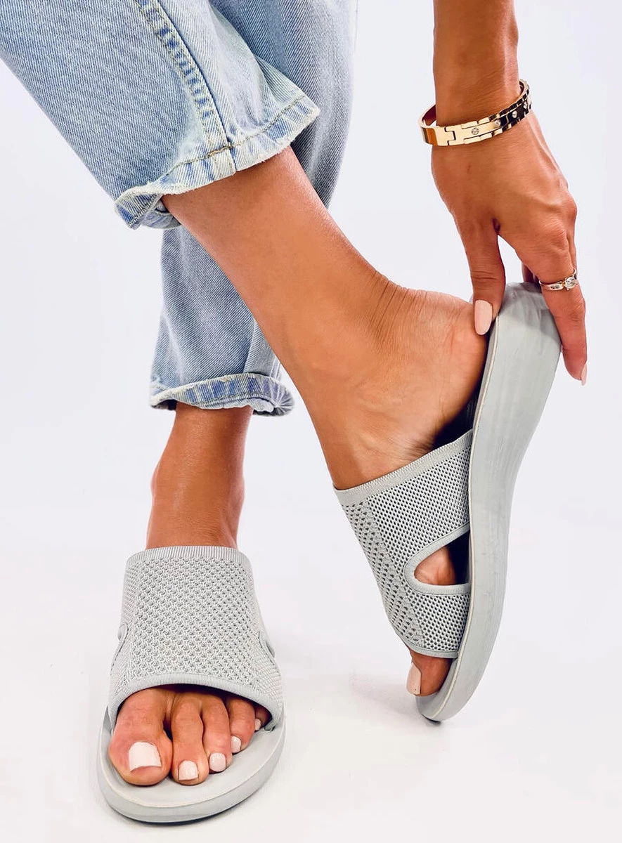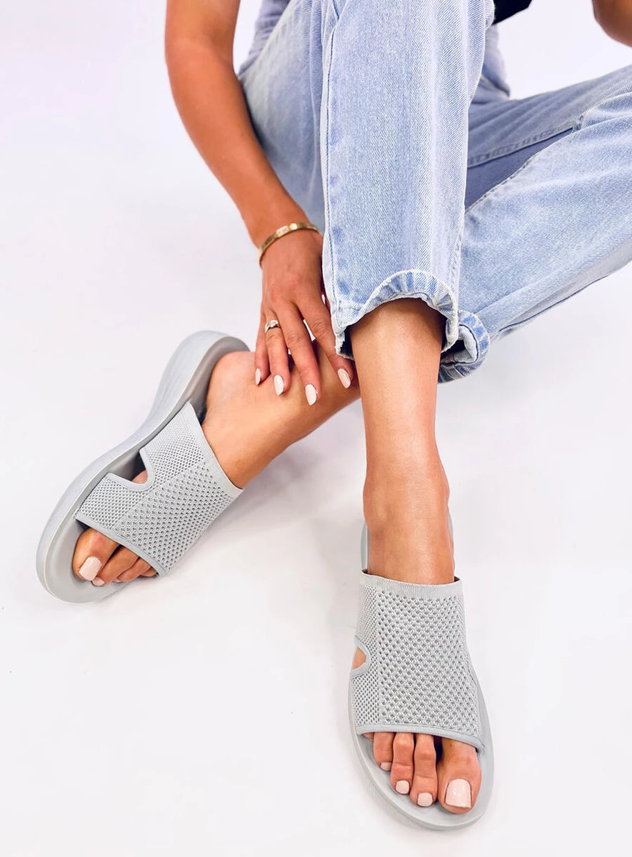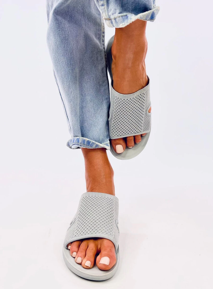 Ażurowe klapki damskie na delikatnym podwyższeniu (3,5 cm). Szeroki pasek wykonany z przewiewnej i elastycznej tkaniny zapewni komfort na każdym kroku... Idealnie sprawdzą się na co dzień : ) Materiał zewnętrzny – tkanina.