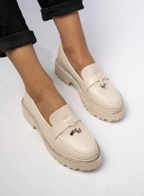 Mokasyny Viviana BLACK PU to połączenie ponadczasowej elegancji i wygody, idealne dla kobiet ceniących styl. Wykonane z wysokiej jakości czarnej eko skóry, prezentują klasyczny fason z nowoczesnym akcentem. Gruba, bieżnikowana podeszwa zapewnia komfort i stabilność, a subtelne zdobienia cyrkoniami dodają im luksusowego wykończenia. Pasują zarówno do codziennych stylizacji z jeansami, jak i bardziej formalnych zestawów z marynarką.
