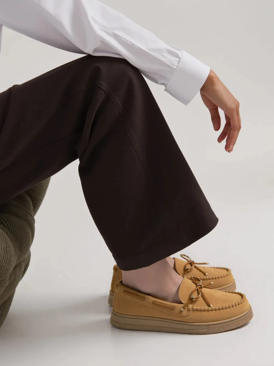 Mokasyny Lucia CAMEL to stylowe i wygodne obuwie, które świetnie sprawdzi się na co dzień. Wykonane z miękkiej zamszowej skóry ekologicznej, gwarantują komfort noszenia i idealne dopasowanie do stopy. Eleganckie wiązanie w dopasowanym odcieniu dodaje im subtelnego uroku, a lekka, elastyczna podeszwa zapewnia wygodę przez cały dzień. Doskonały wybór do casualowych stylizacji i miejskich zestawów.